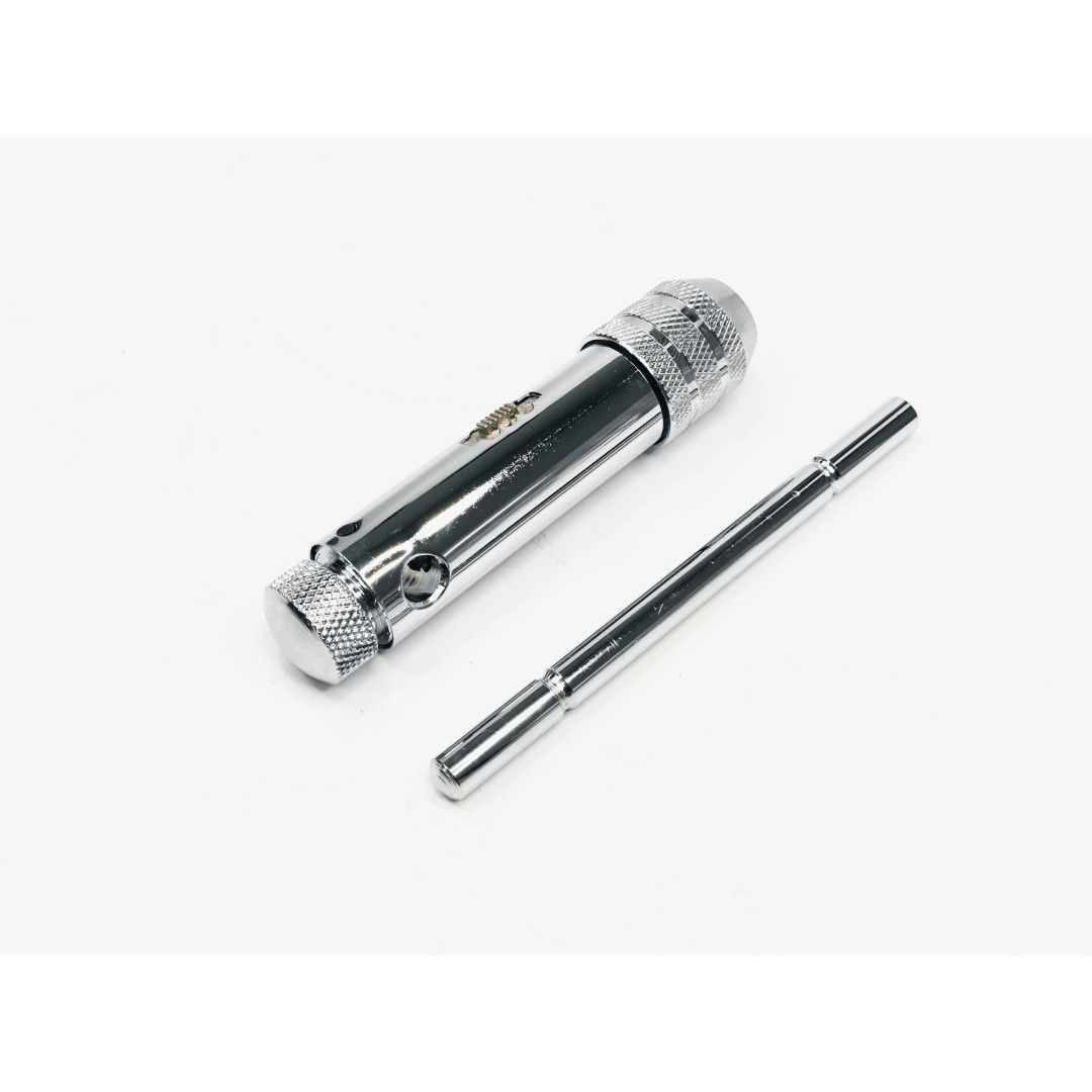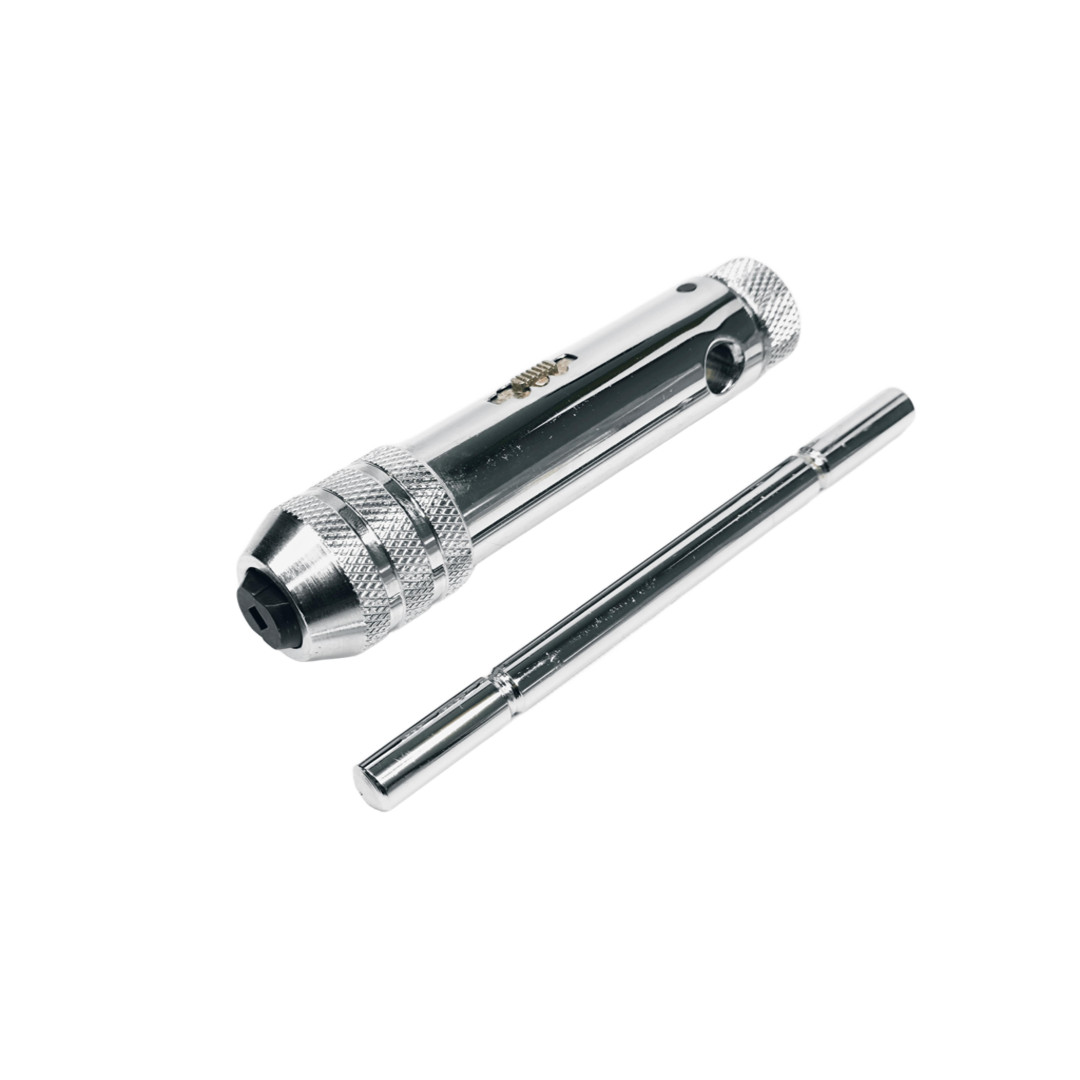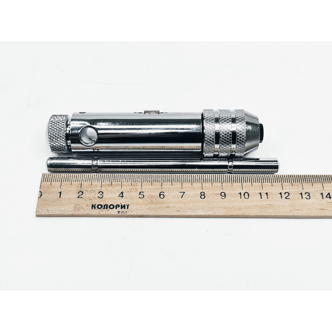 Держатель для метчиков — это удобный и надежный инструмент для работы с метчиками размером 5–12 мм. Благодаря реверсивному храповому механизму и съемной ручке, данный держатель позволяет легко выполнять нарезку резьбы в ограниченном пространстве, где стандартные инструменты могут быть неудобны в использовании.