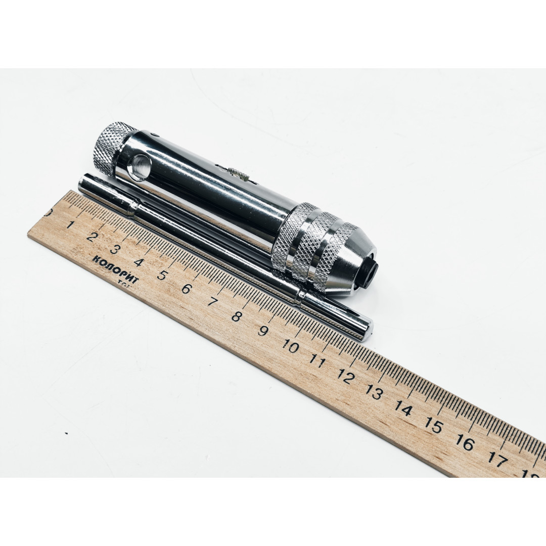 Надёжная фиксация метчика: Благодаря раздвижной зажимной части метчик фиксируется прочно, что обеспечивает точность работы и предотвращает проскальзывание