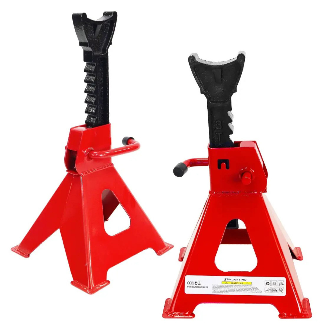 Подставки по машину домкратные 2 тонны - недорогие и одновременно надежные страховочные средства. Домкратные подставки имеют прочную и простую конструкцию которая позволяет им безопасно удерживать машину в подхвате на протяжении всего ремонта. Изготовлена домкратная подставка из высокоуглеродистой закаленной стали и имеет антикоррозионное лакокрасочное покрытие. Произведена домкратная механическая подставка известным брендом Profline, который специализируется по выпуску целой линейки инструментов и оборудования для профессионального ремонта автомобилей. Страховочный комплект включает в себя две подставки.