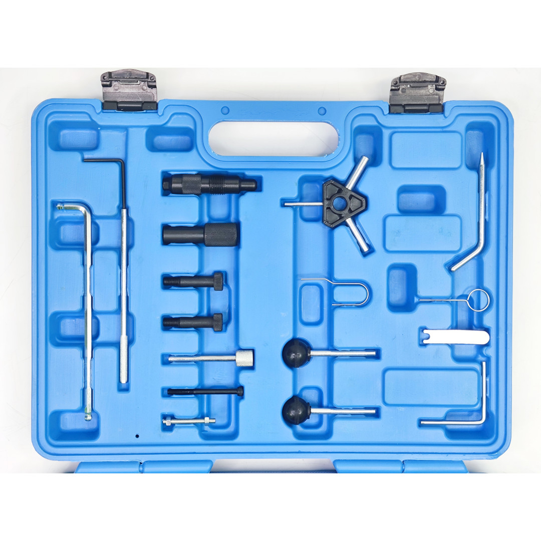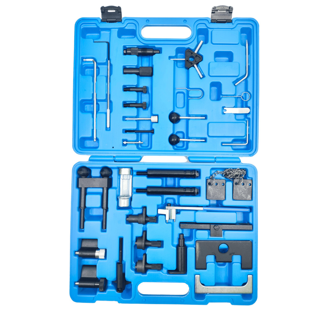 Применение: Этот набор фиксаторов идеально подходит для специалистов, работающих с автомобилями VW и Audi, а также для мастерских, где проводится ремонт и обслуживание бензиновых и дизельных двигателей этих марок. Использование набора обеспечивает точность и безопасность при работе с распредвалами, коленвалом, ТНВД и другими компонентами двигателя.