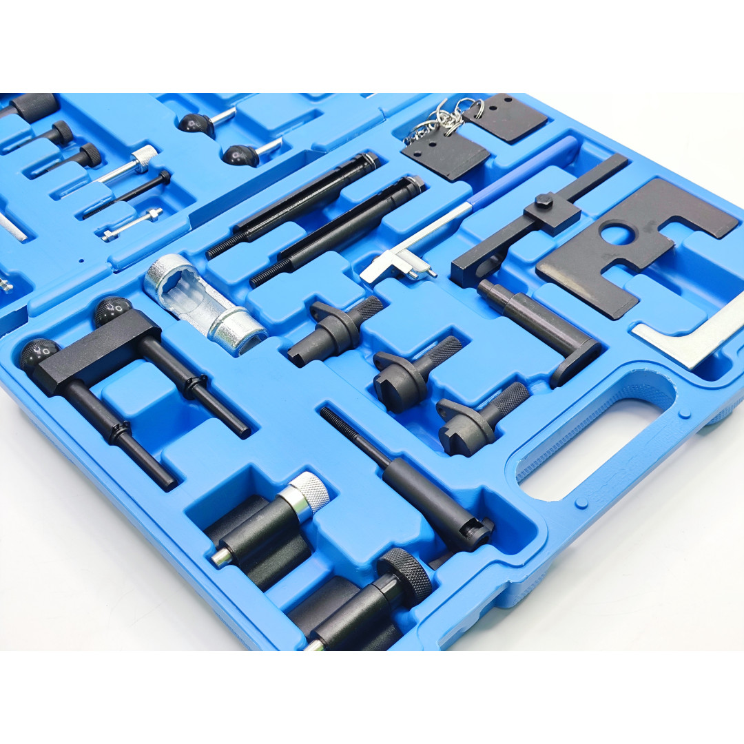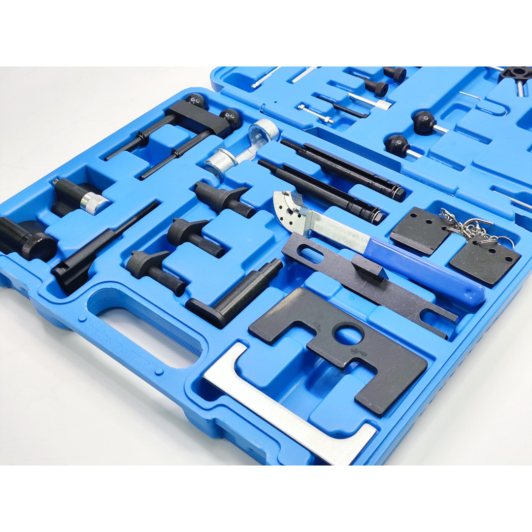 Этот набор предназначен для обслуживания двигателей автомобилей марок VW и Audi, обеспечивая точную установку и фиксацию различных компонентов двигателя во время ремонта или технического обслуживания. В комплект входит 33 элемента, подходящих для широкого спектра бензиновых и дизельных двигателей.