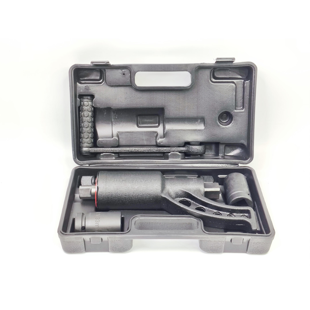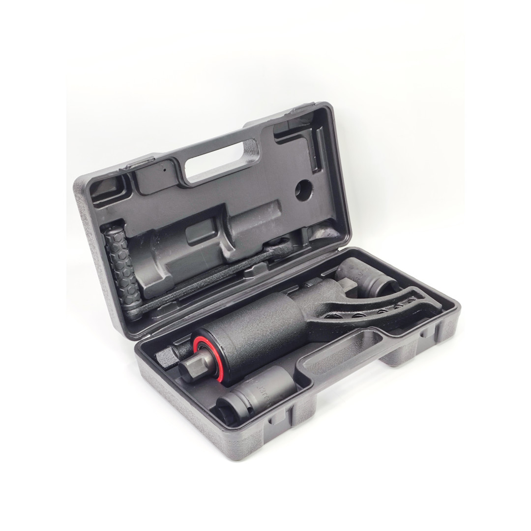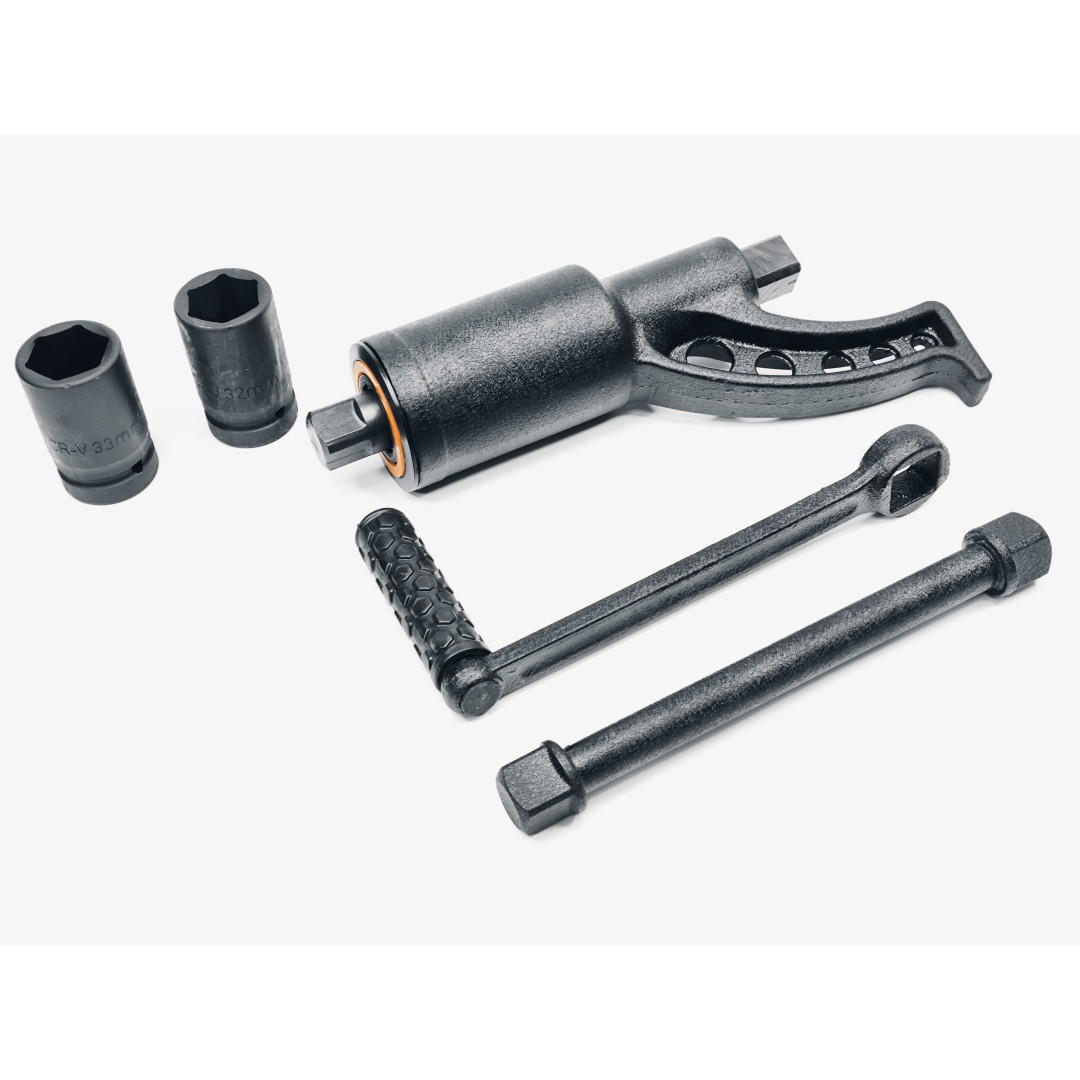 Инструмент предназначен для срыва гаек. После того как гайка сбита, в ход идет удлинитель. Им откручивать проще, но вздернуть застывшую деталь с места не получается. Для этого существует баллонный роторный ключ на подшипнике Profline 30001.