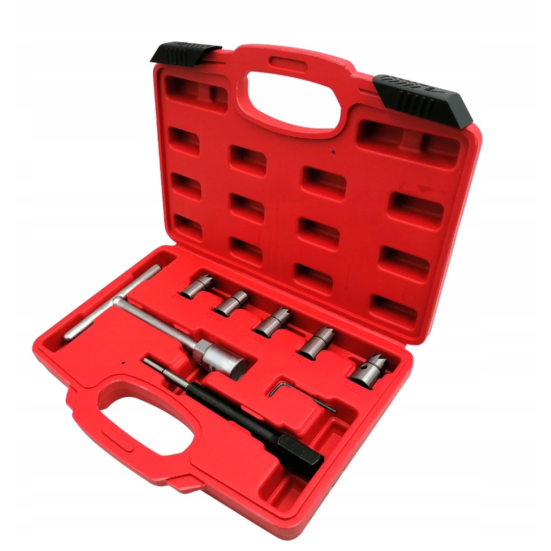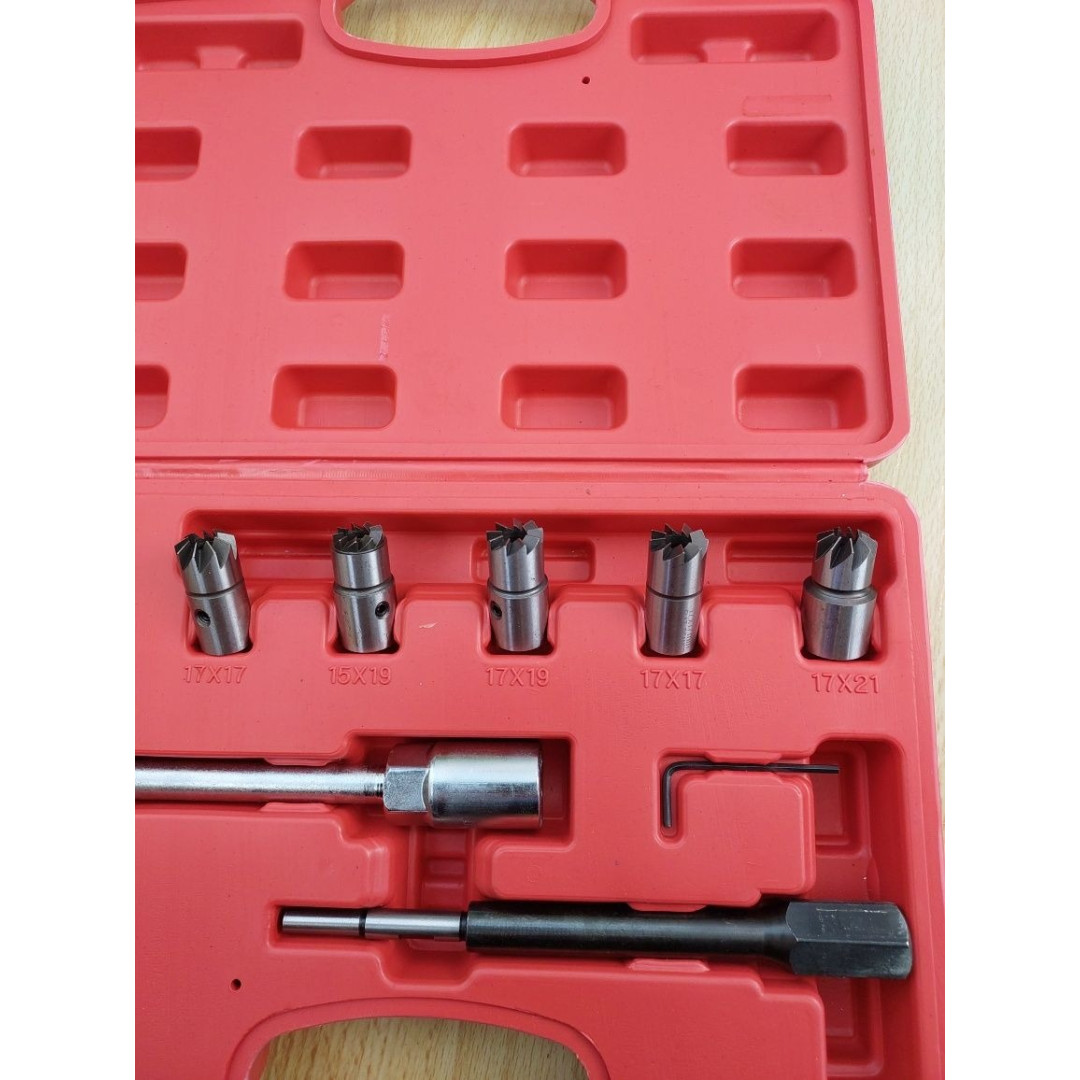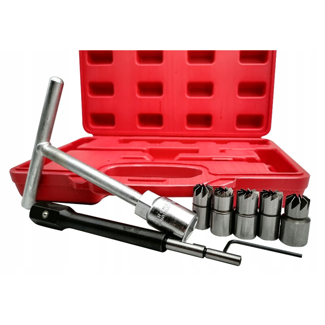 Этот набор предназначен для очистки и раскоксовки посадочных мест форсунок дизельных двигателей. Он также может использоваться для подрезки головок форсунок при восстановлении дизельных двигателей и замене форсунок.