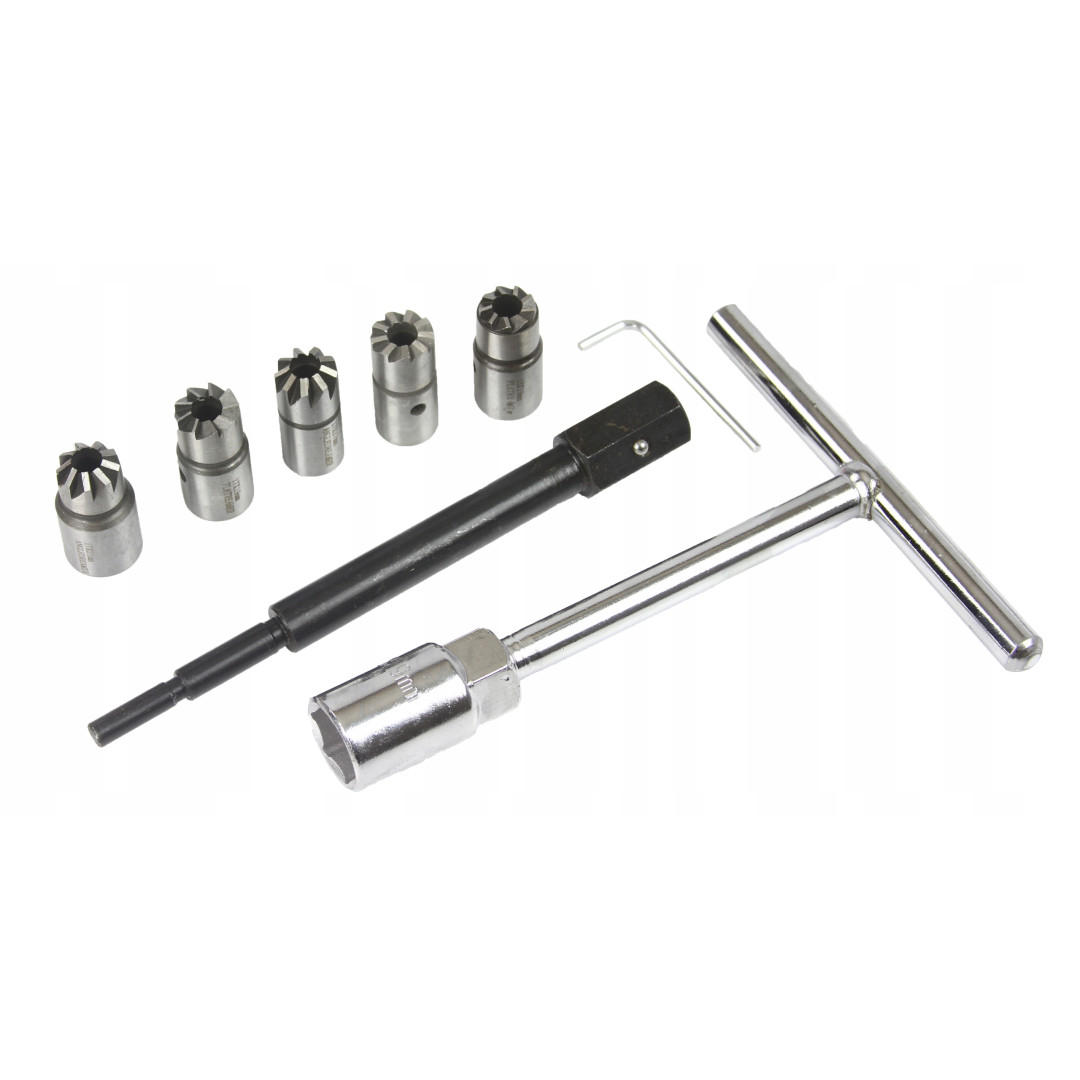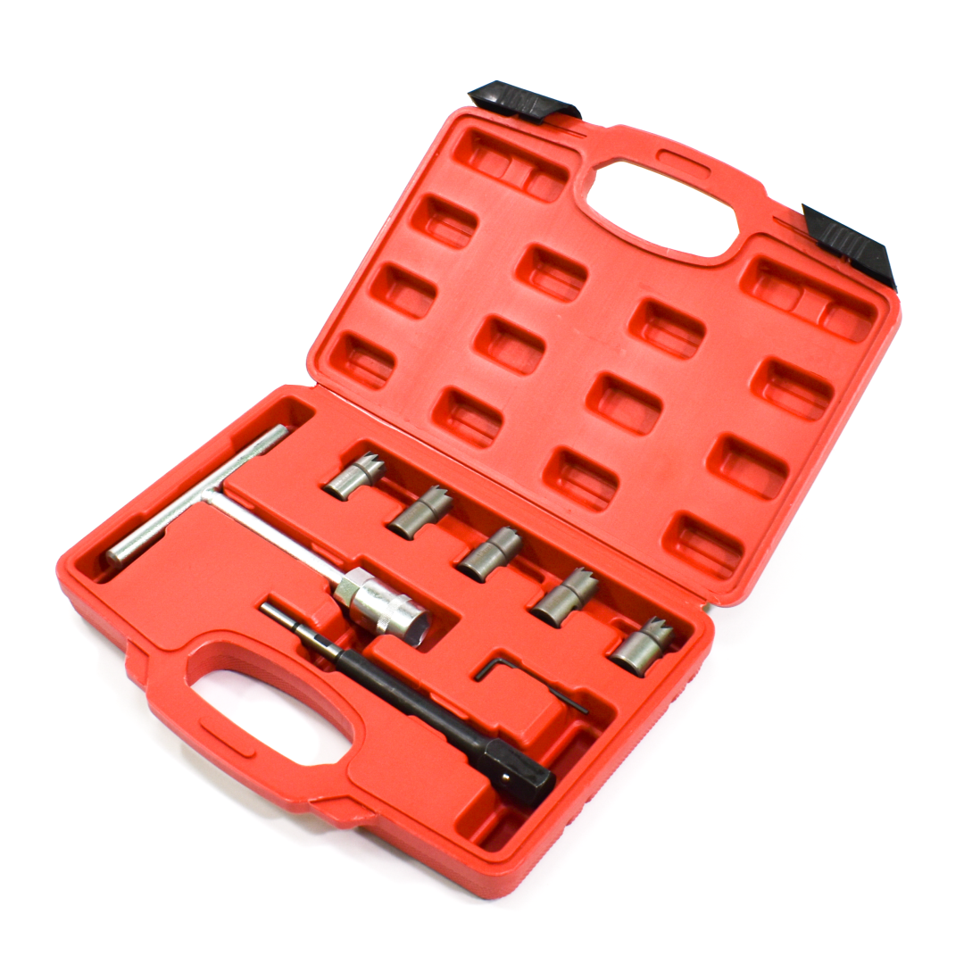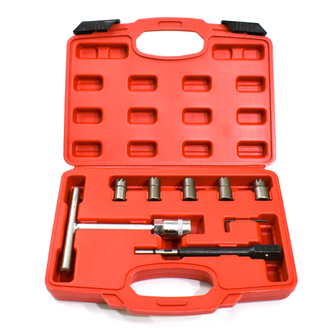Этот набор предназначен для очистки и раскоксовки посадочных мест форсунок дизельных двигателей. Он также может использоваться для подрезки головок форсунок при восстановлении дизельных двигателей и замене форсунок.