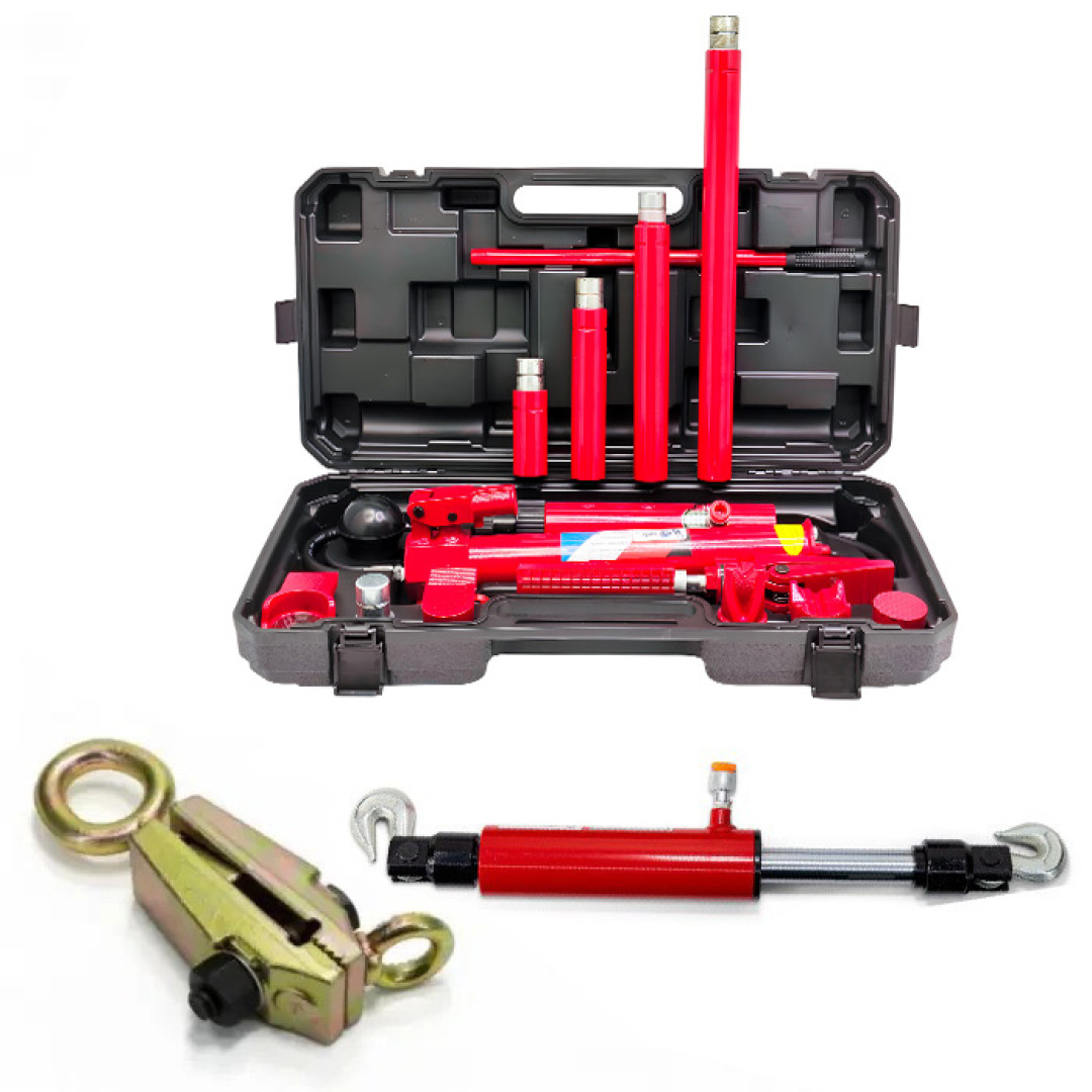 Комплект гидравлических распорок рассчитан на максимальную нагрузку в 10 тонны. В состав комплекта входит гидравлическая помпа (насос), с помощью которого выполняется растяжка и рихтовка конструкций из металла и кузовов автомобилей. Гидравлический клин с помощью которого обеспечивается поднятие тяжестей при минимальном зазоре и комплект насадок.
