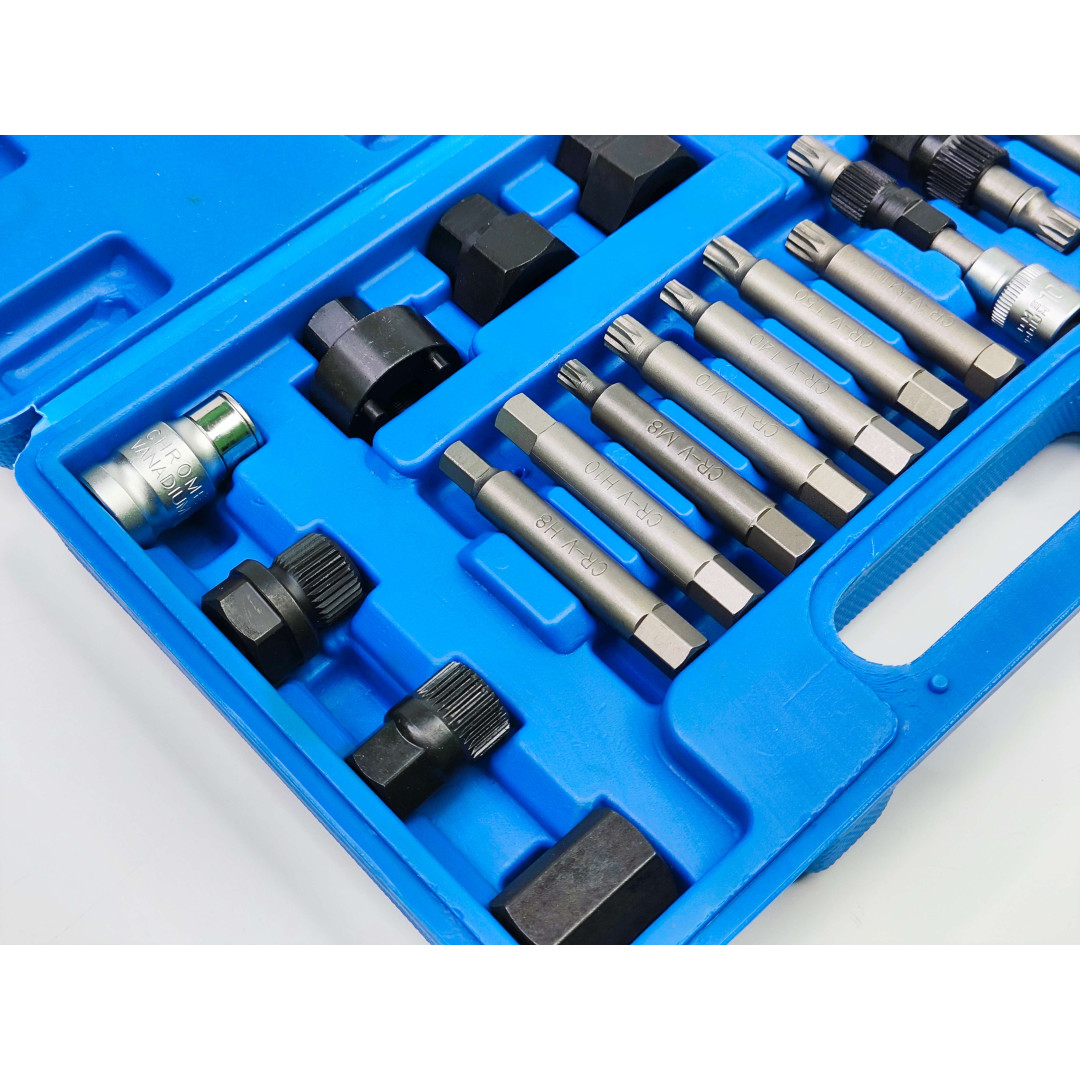 Набор для снятия шкивов генераторов Profline 10318 является специализированным инструментом, который позволяет механикам и автосервисам эффективно демонтировать и заменять шкивы генераторов, а также работать с обгонными муфтами и другими компонентами генератора. Этот набор особенно полезен при обслуживании генераторов, использующих различные типы шкивов и роликов. Он является важным инструментом для механиков, обслуживающих генераторы в автосервисах. Набор обеспечивает точность, эффективность и безопасность при демонтаже и ремонтных работах.