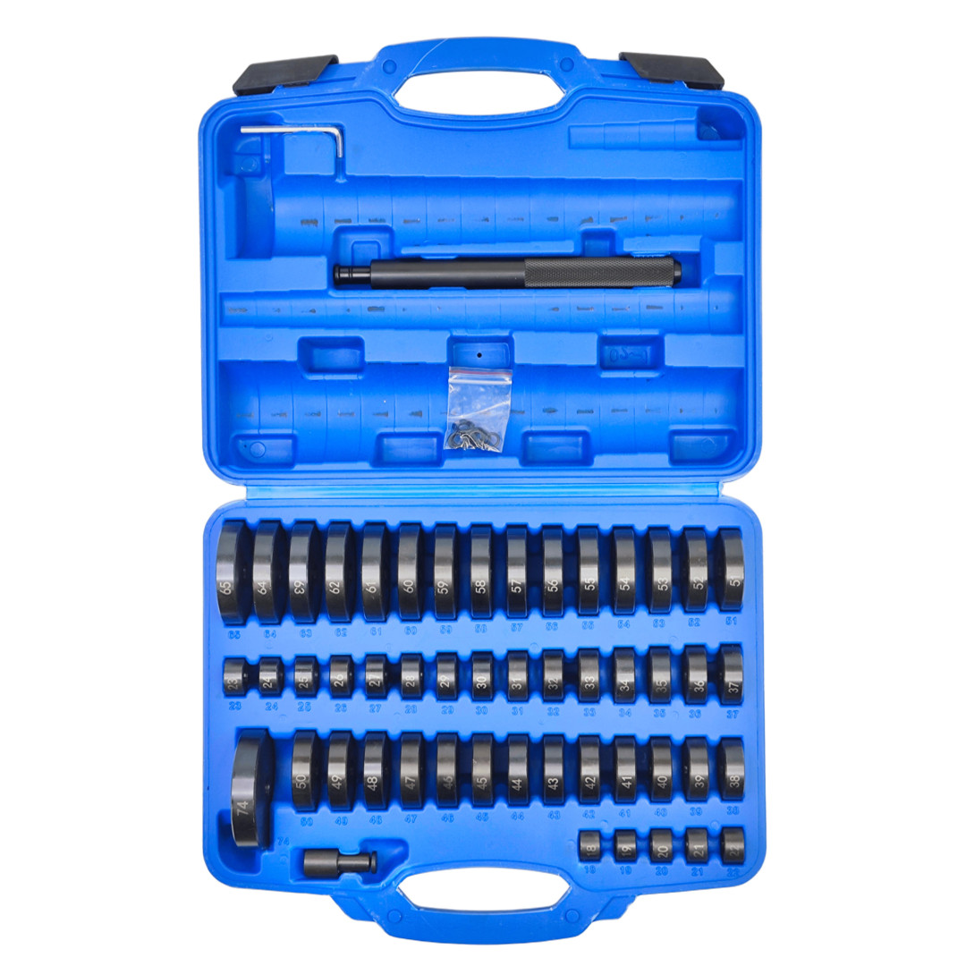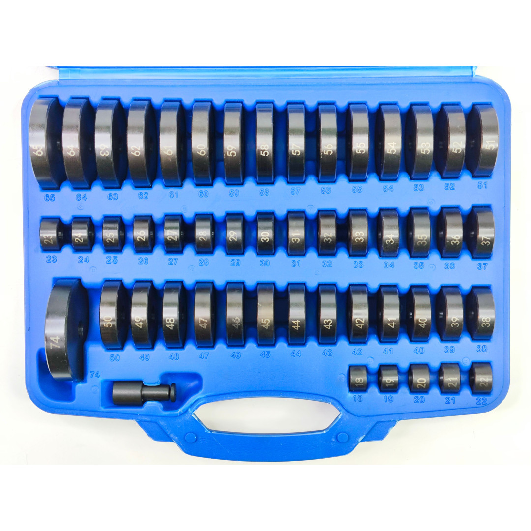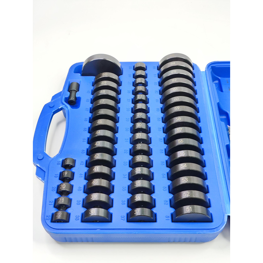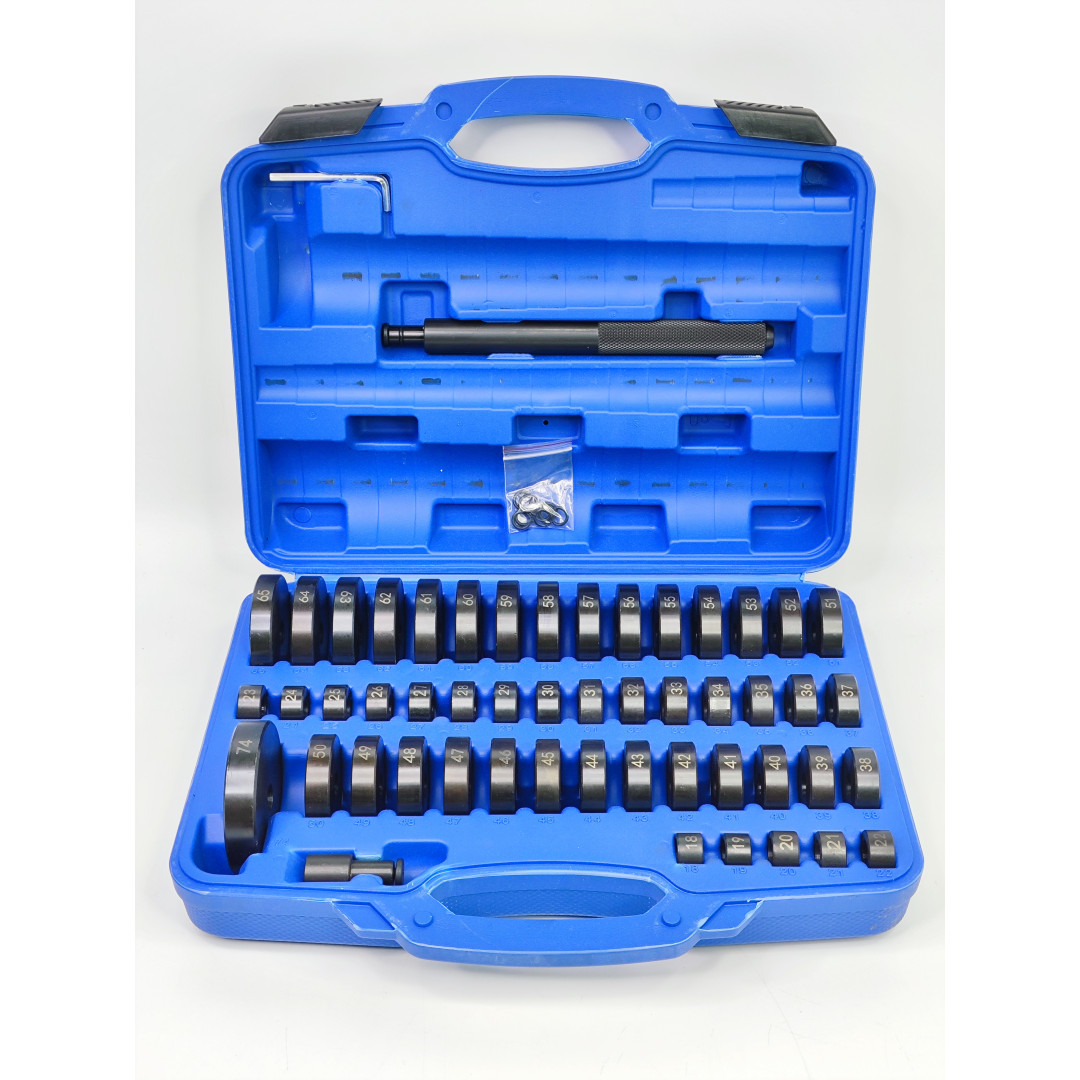 Профессиональный универсальный набор Profline 30582 (52 единицы) — один из самых полных комплектов на рынке для работы с подшипниками, сальниками, сайлентблоками, втулками и уплотнителями без повреждения деталей. Включает 49 оправок диаметром от 18 до 65 мм (шаг 1 мм) + оправку 74 мм + две рукоятки и шестигранный ключ. Идеально подходит для легковых авто, микроавтобусов, мотоциклов и многих промышленных задач.