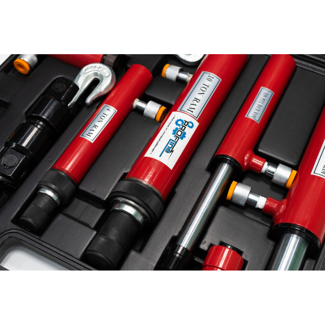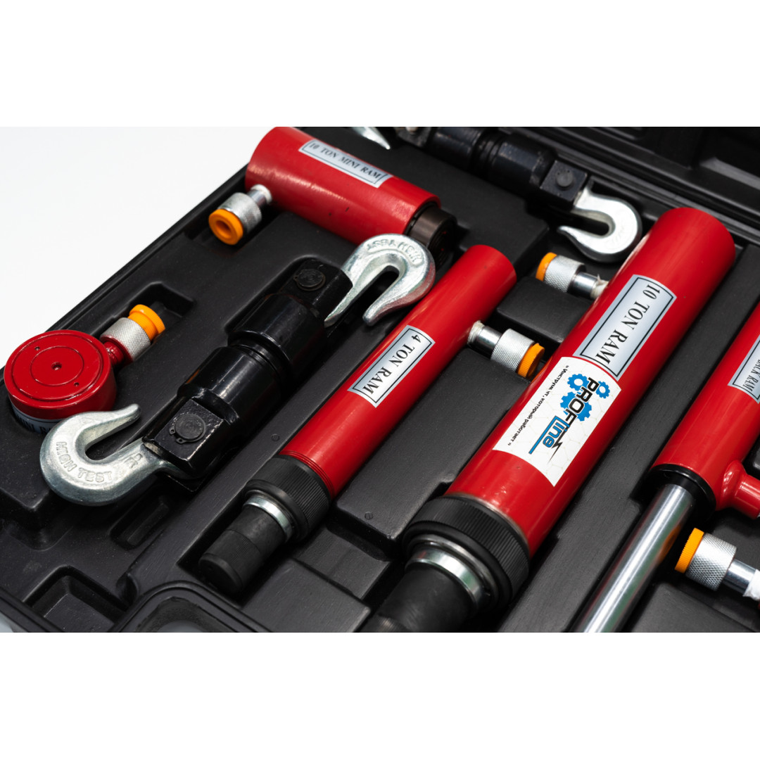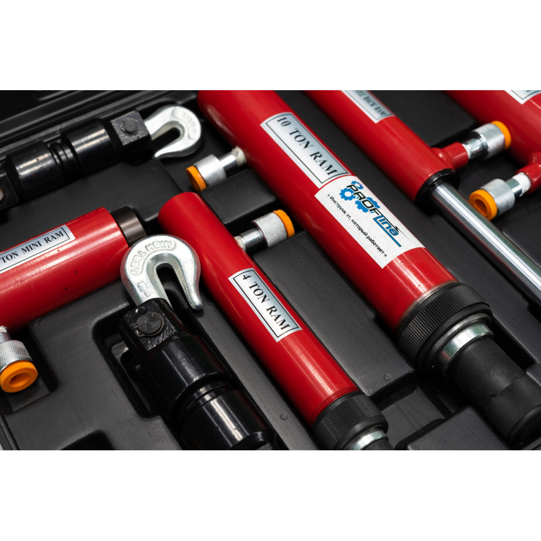 Набор гидравлических цилиндров и стяжек 7 ед. Profline 97005 - это вспомогательный набор инструментов для восстановления формы кузова легковых и грузовых автомобилей. Гидросистема цилиндров и стяжек позволяет развивать усилие различного тоннажа, что делает набор эффективным в работе. Крюки удобной формы обеспечивают надежное сцепление между стягиваемыми элементами. Набор комплектуется стяжками с подвижным и неподвижным крюком, что дает дополнительные возможности при проведении ремонтных работ. Поставляет в прочном противоударном кейсе, который обеспечивает дополнительную сохранность и мобильность инструмента.