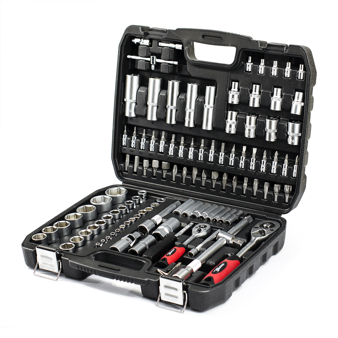 Купив собі такий набір для ремонту автомобіля та використання при потребі в домі. Складається з великої кількості різних інструментів та ж зручним для користування. Велика різноманітність головок дюймові та міліметрові, трещотка працює добре, не люфтить.