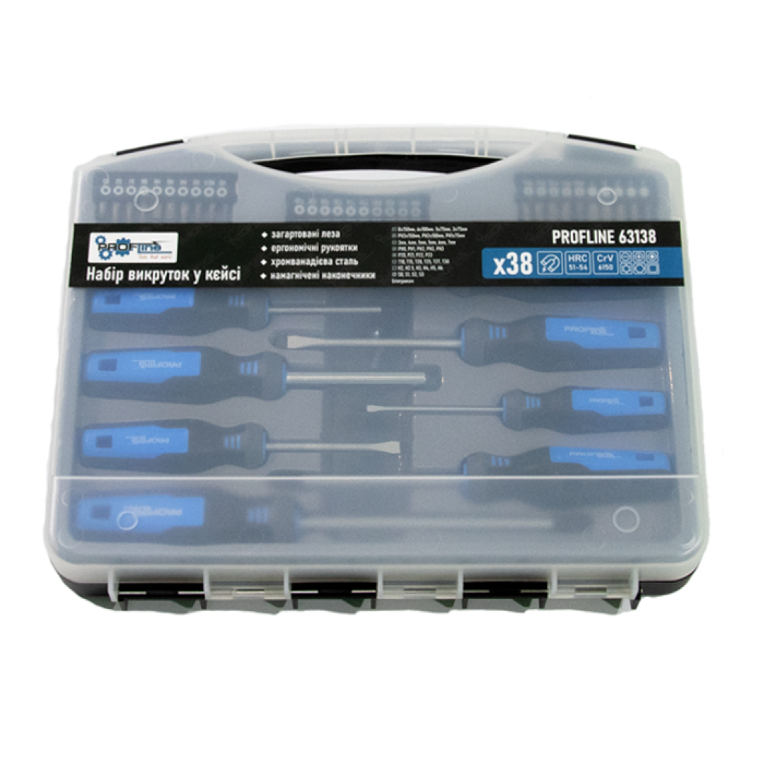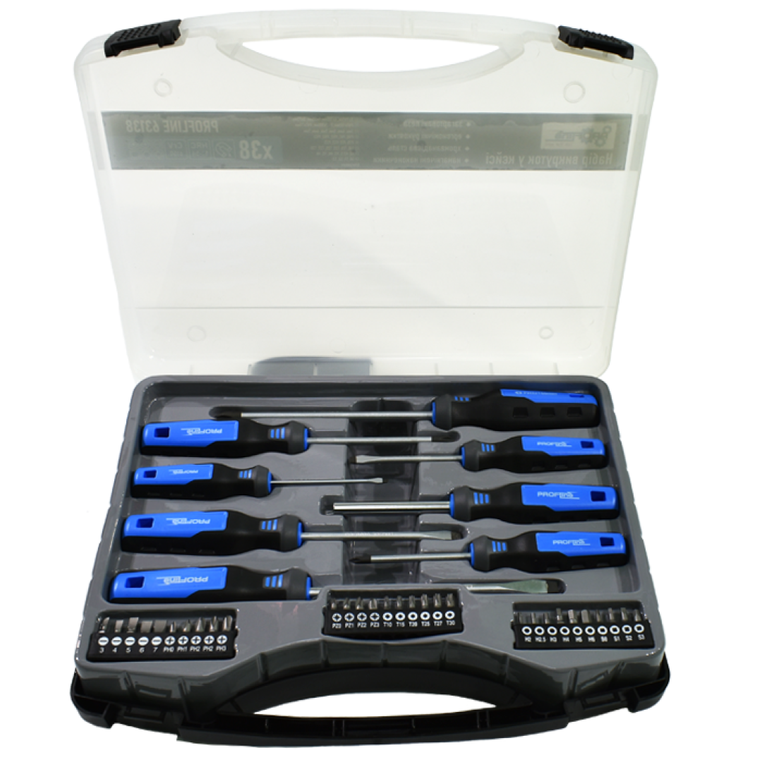 Набор отверток профессиональных с набором бит 38 ед. в кейсе Profline 63138
