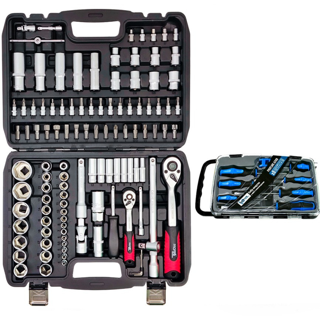 Набор инструментов 2в1 (Набор 108 ед. + Набор отверток профессиональных в кейсе 7 ед. с намагничивателем) Profline 61085-203-1