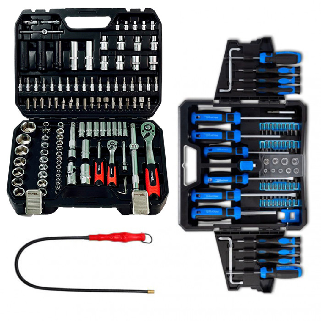 Наборы инструментов - это новое слово в поддержку качества и многофункциональности! Благодаря своей практичности идеально подходят для автолюбителей и домашних мастеров. Широкий выбор инструментов позволяет справиться почти с любым видом крепежа, что очень выручает при внезапных поломках в дороге и во время ремонтных работ в гараже.