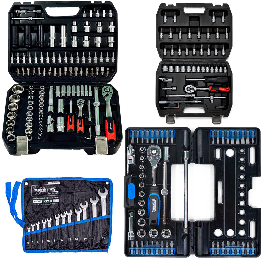 Наборы инструментов - это новое слово в поддержку качества и многофункциональности! Благодаря своей практичности идеально подходят для автолюбителей и домашних мастеров. Широкий выбор инструментов позволяет справиться почти с любым видом крепежа, что очень выручает при внезапных поломках в дороге и во время ремонтных работ в гараже.