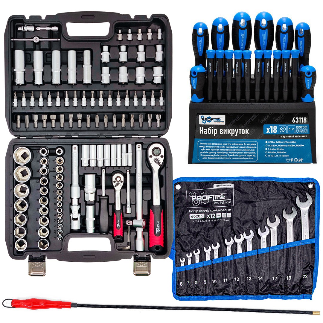 Набор инструментов 4в1 (набор 108 ед + набор ключей 12ед + набор отверток 18 ед + магнит) PROFLINE 61085-001
