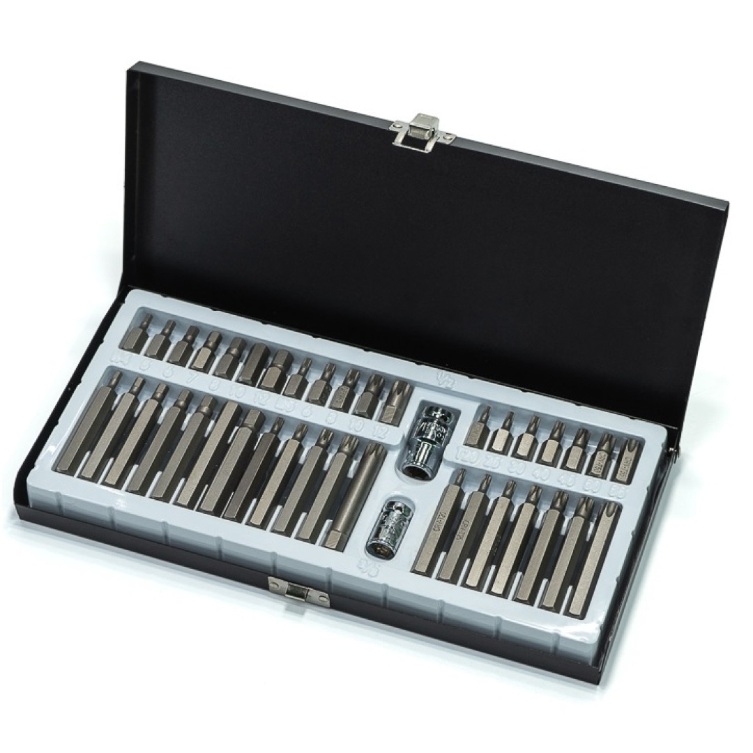 - Комплектация: TORX 30 мм: T20, T25, T30, T40, T45, T50, T55; 75 мм: T20, T25, T30, T40, T45, T50, T55; HEX: 30 мм: H4, H5, H6, H7, H8, H10, H12; 75 мм: H4, H5, H6, H7, H8, H10, H12; SPLINE: 30 мм: M5, M6, M8, M10, M12; 75 мм: M5, M6, M8, M10, M12