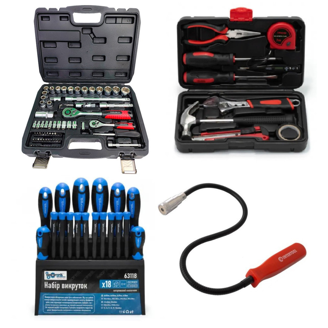 Набор инструментов 4в1 (набор 72 ед + набор инструмента слесарный 10 ед + набор отверток профессиональных 18 ед. + магнит на гибком удлинителе) Profline 60725-207