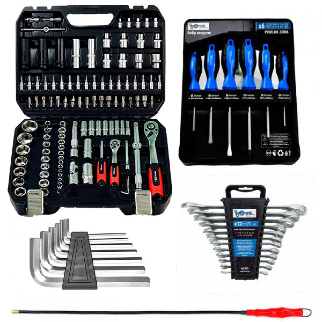 Набор инструментов 5в1 (набор 111 ед., ключи 12 ед, набор отверток 6 ед, гибкий удлинитель и шестигранники) Profline 61085-205