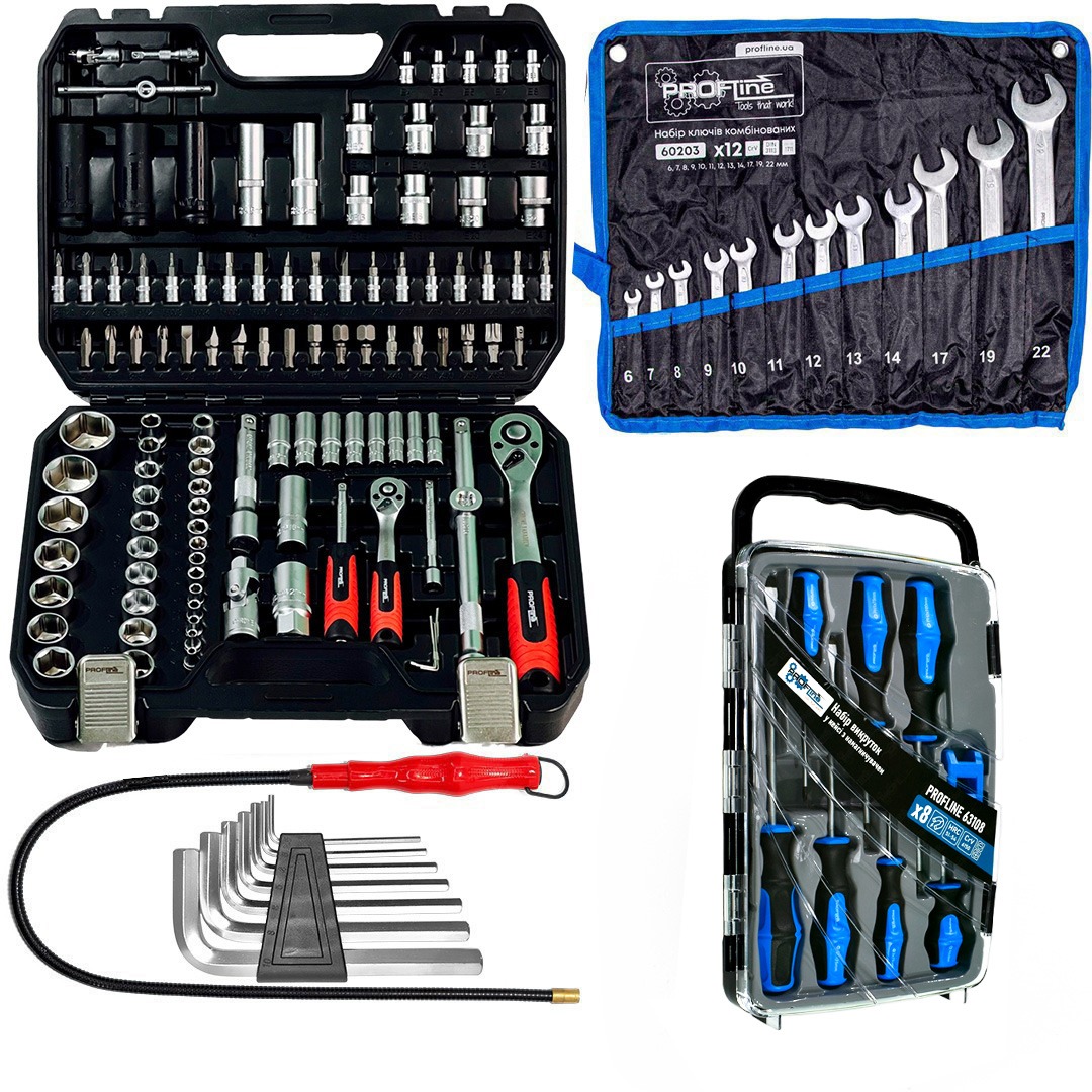 Наборы инструментов - это новое слово в поддержку качества и многофункциональности! Благодаря своей практичности идеально подходят для автолюбителей и домашних мастеров. Широкий выбор инструментов позволяет справиться почти с любым видом крепежа, что очень выручает при внезапных поломках в дороге и во время ремонтных работ в гараже.