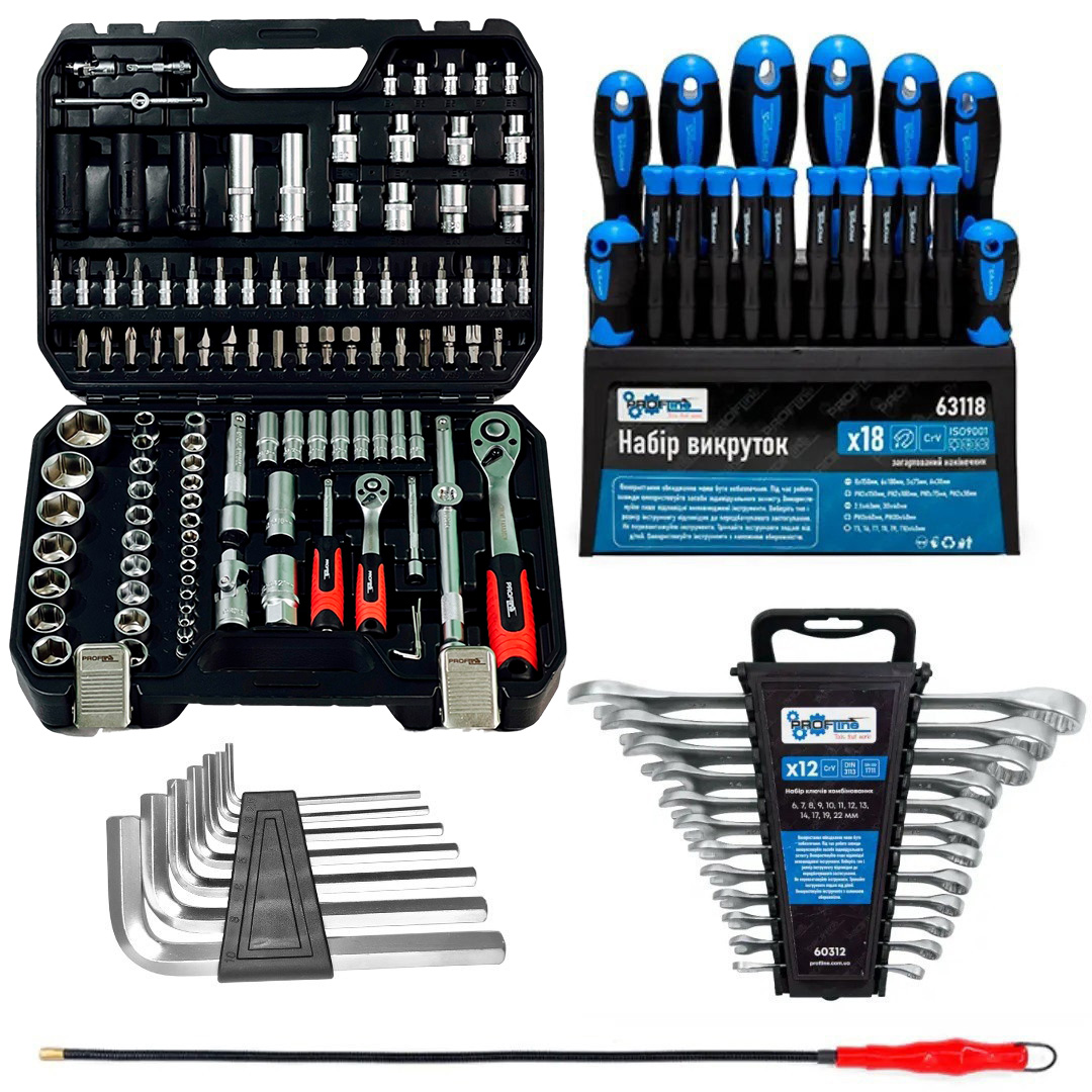 Наборы инструментов - это новое слово в поддержку качества и многофункциональности! Благодаря своей практичности идеально подходят для автолюбителей и домашних мастеров. Широкий выбор инструментов позволяет справиться почти с любым видом крепежа, что очень выручает при внезапных поломках в дороге и во время ремонтных работ в гараже.