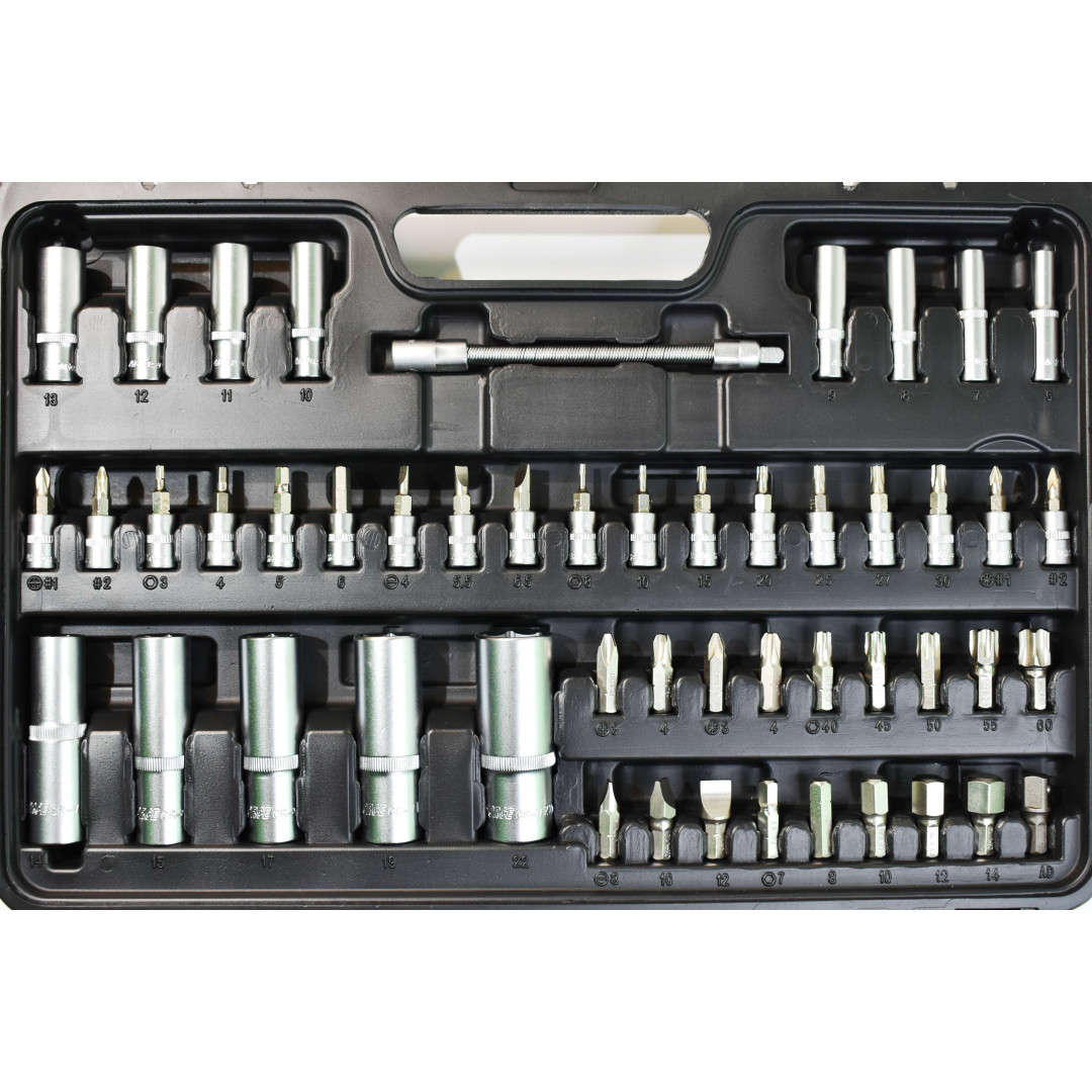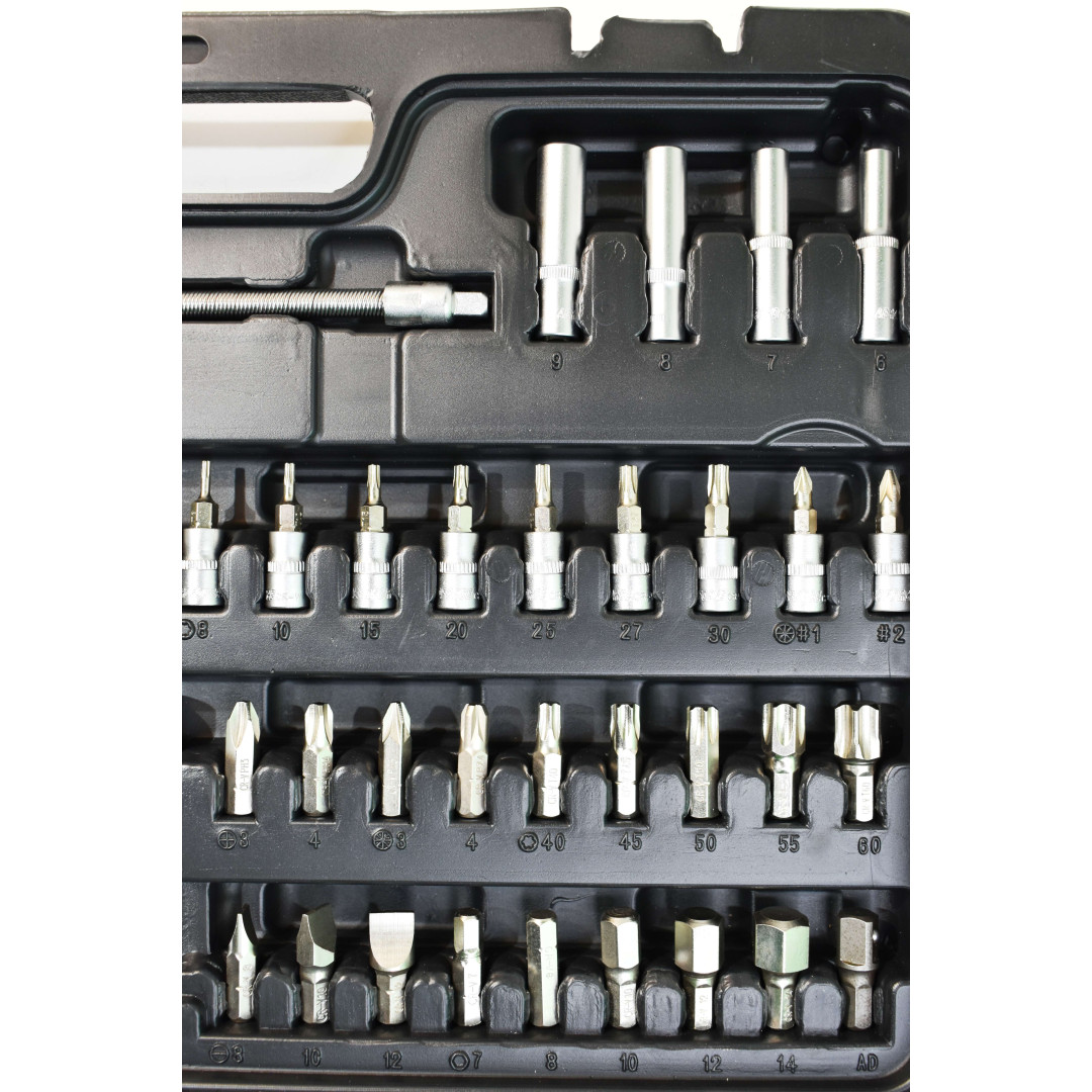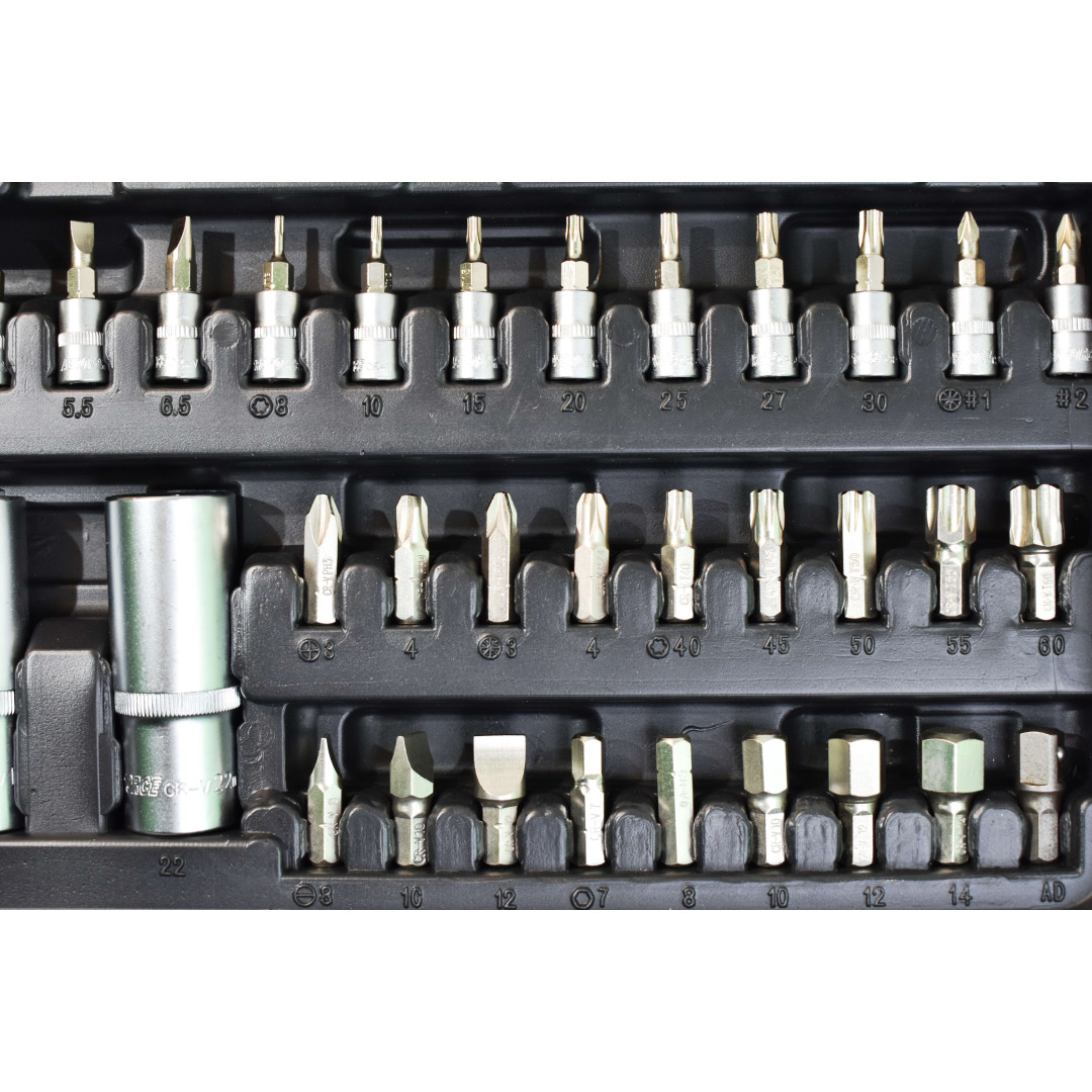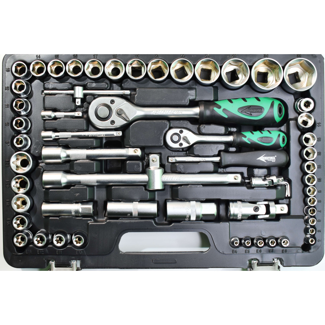 Набор инструментов Aeroforce 110 предметов. Профессионального качества Предназначен для использования в автосервисах и мастерских и других тяжёлых условиях.