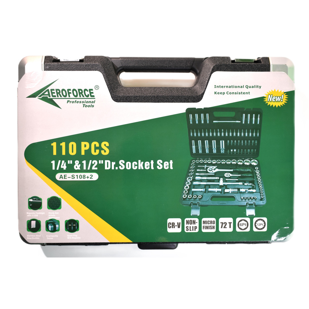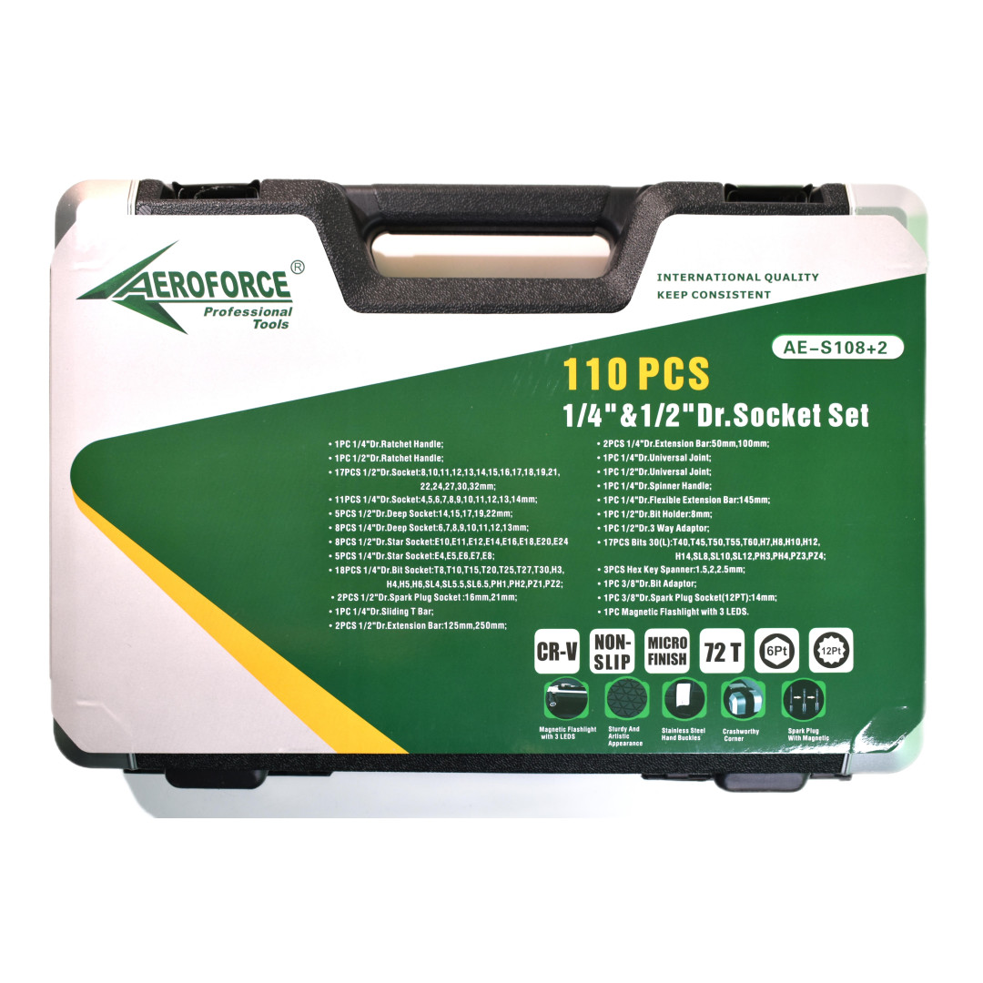 Набор профессиональных инструментов (1/2', 1/4') 110 ед. Aeroforce AE-S108+2