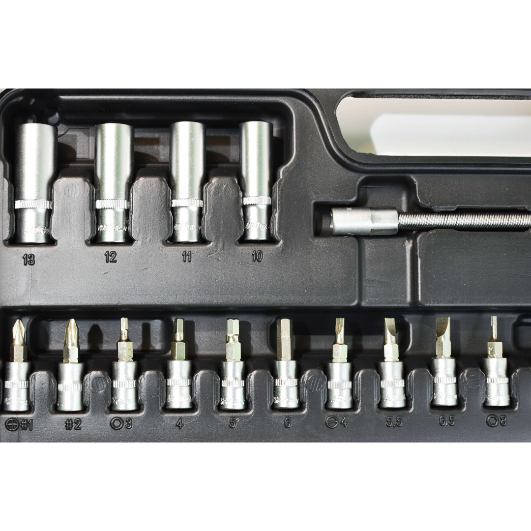 Благодаря высокому качеству и современному внешнему виду, этот набор будет отлично смотреться и в багажнике автомобиля, и в арсенале домашнего мастера, и на верстаке автосервиса.