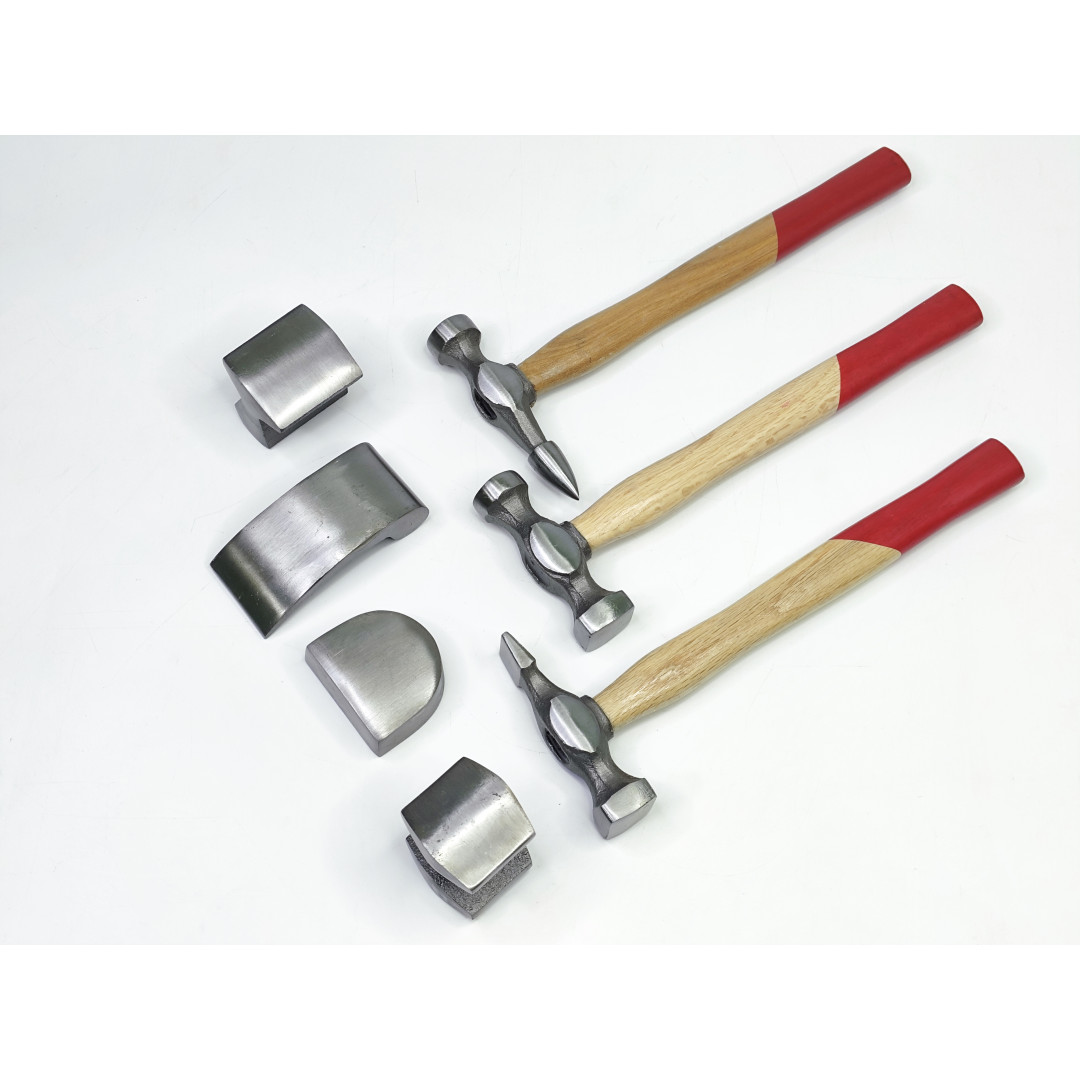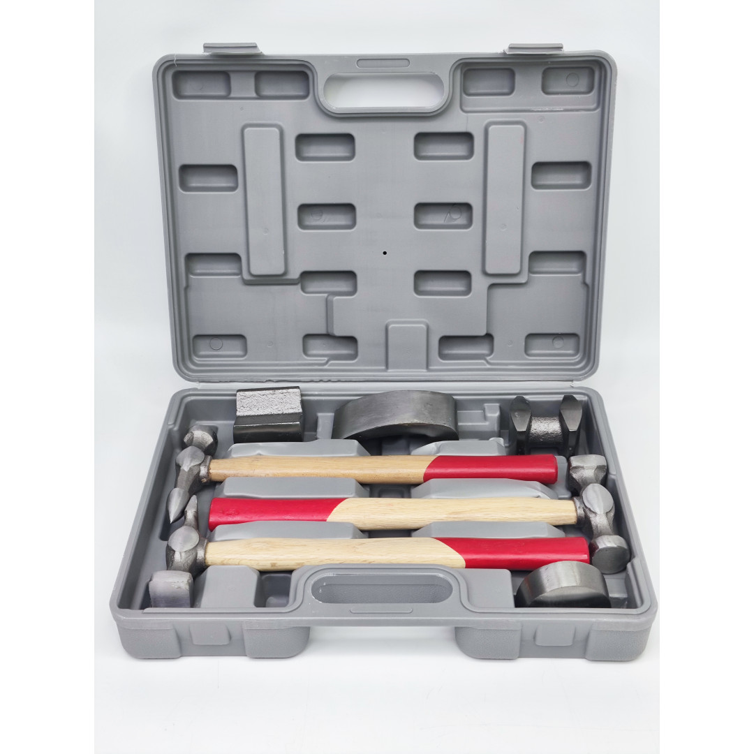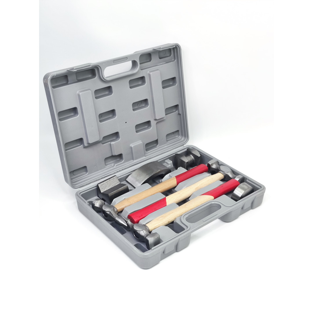 Набор преднозначен для восстановления формы поврежденных поверхностей кузова. Входящие в состав набора молотки и рихтовочные приспособления (подложка рихтовочная, лопатка) применяются для придания поверхности соответствующего профиля. В зависимости от назначения применяются различные виды молотков.