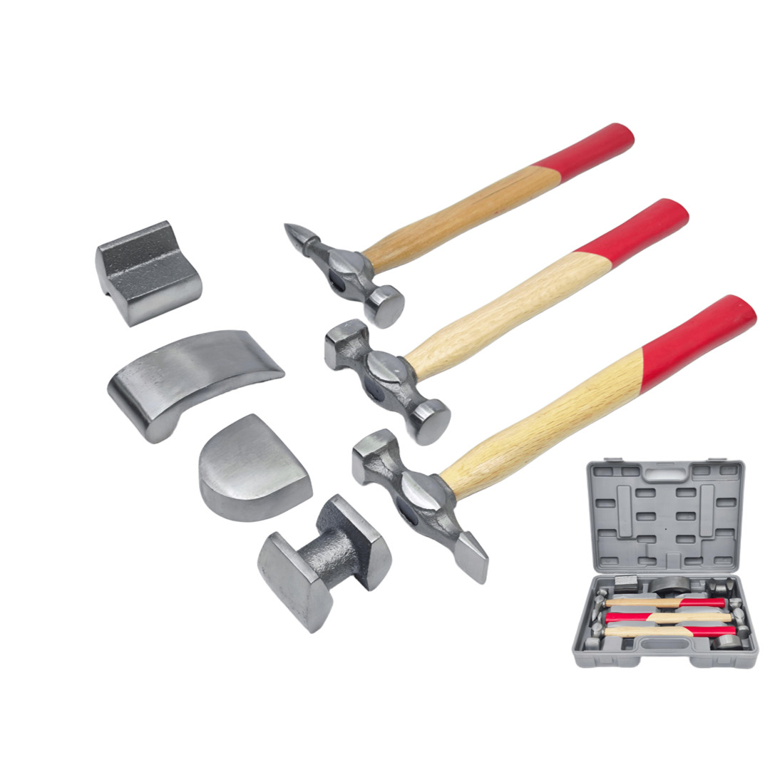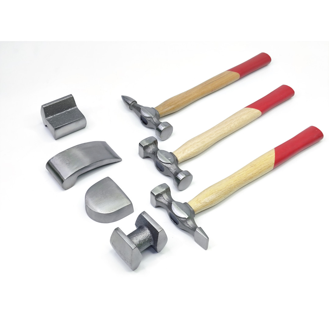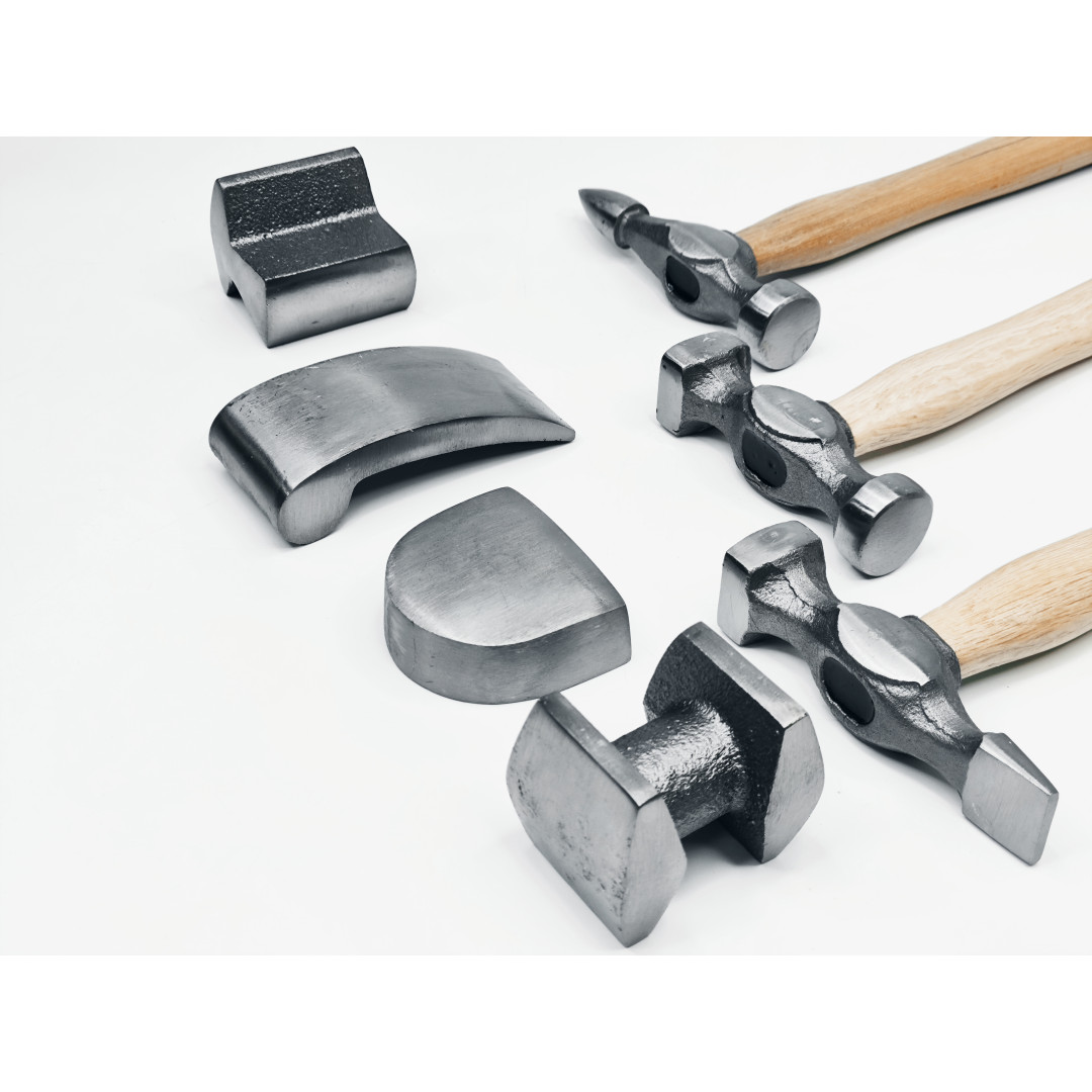 Набор преднозначен для восстановления формы поврежденных поверхностей кузова. Входящие в состав набора молотки и рихтовочные приспособления (подложка рихтовочная, лопатка) применяются для придания поверхности соответствующего профиля. В зависимости от назначения применяются различные виды молотков.
