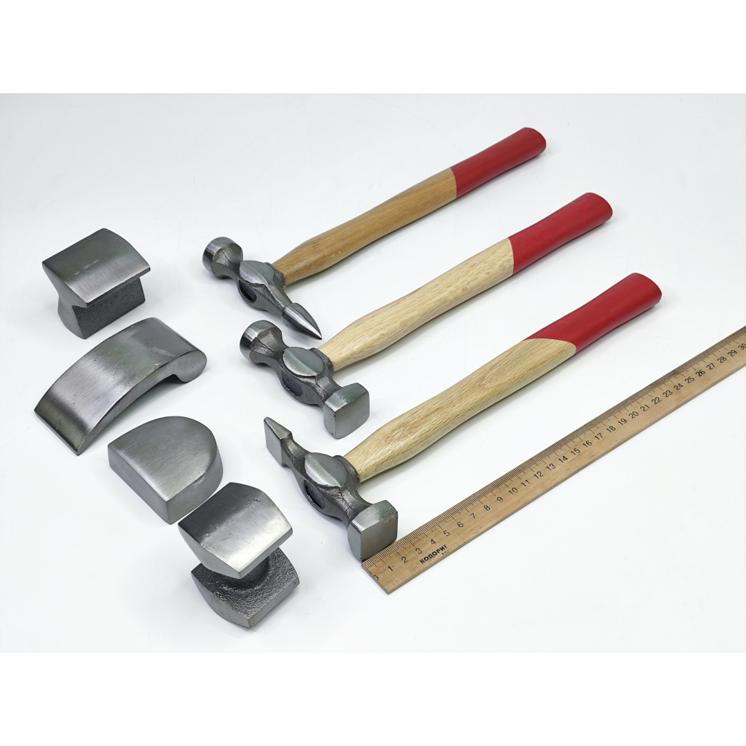 Набор Profline 34100 давно знаком как мастерам кузовных мастерских, так и слесарям промышленных предприятий, ведь с его помощью выравниваются поверхности деталей не только кузовов автомобилей, но и сельскохозяйственной техники, различного оборудования, любых тонкостенных металлических поверхностей. В случае необходимости можно восстанавливать практически любую изрядно помятую панель и основным орудием труда мастера-жестянщика, естественно, является инструмент для рихтовки, состоящий из молотков и наковальней разных форм.