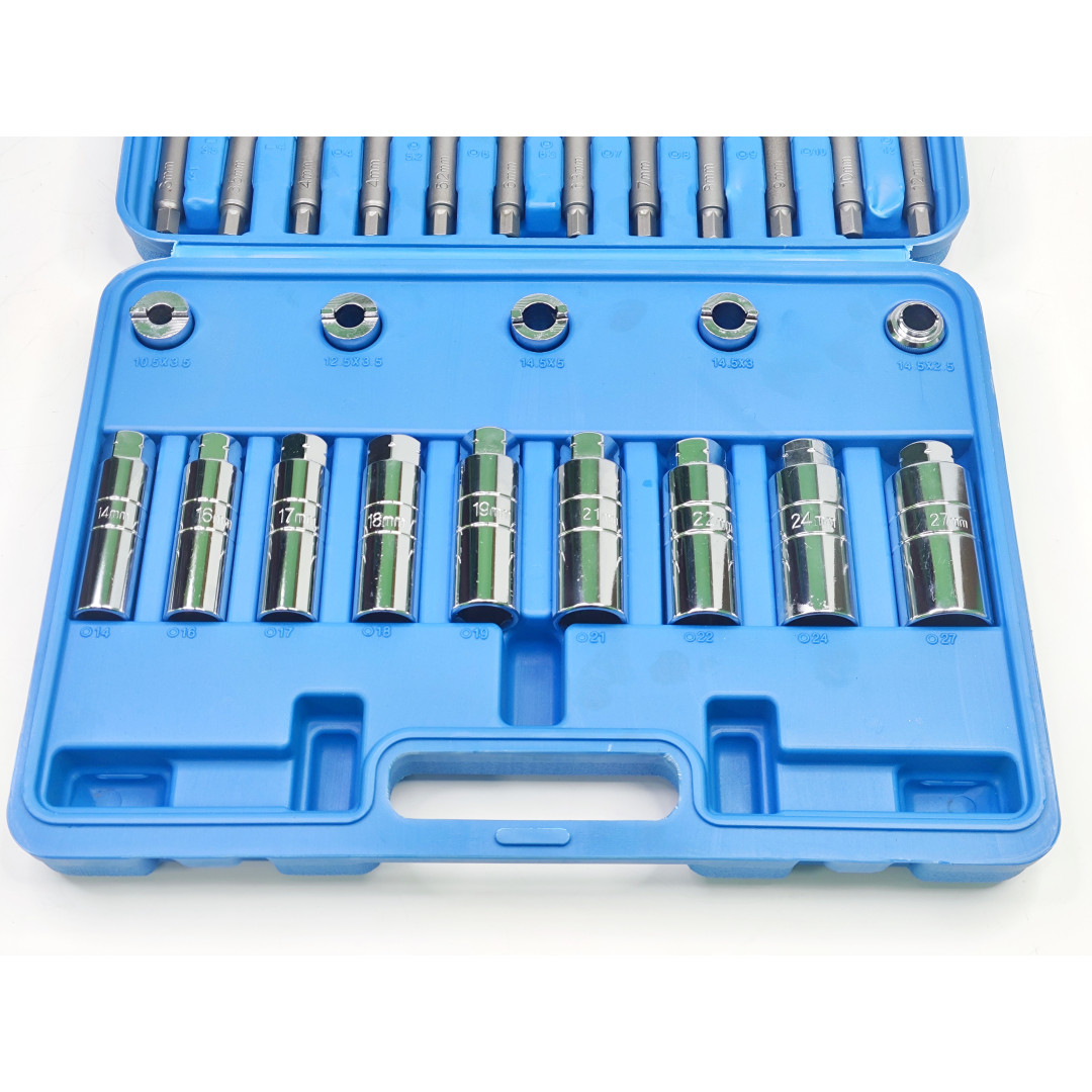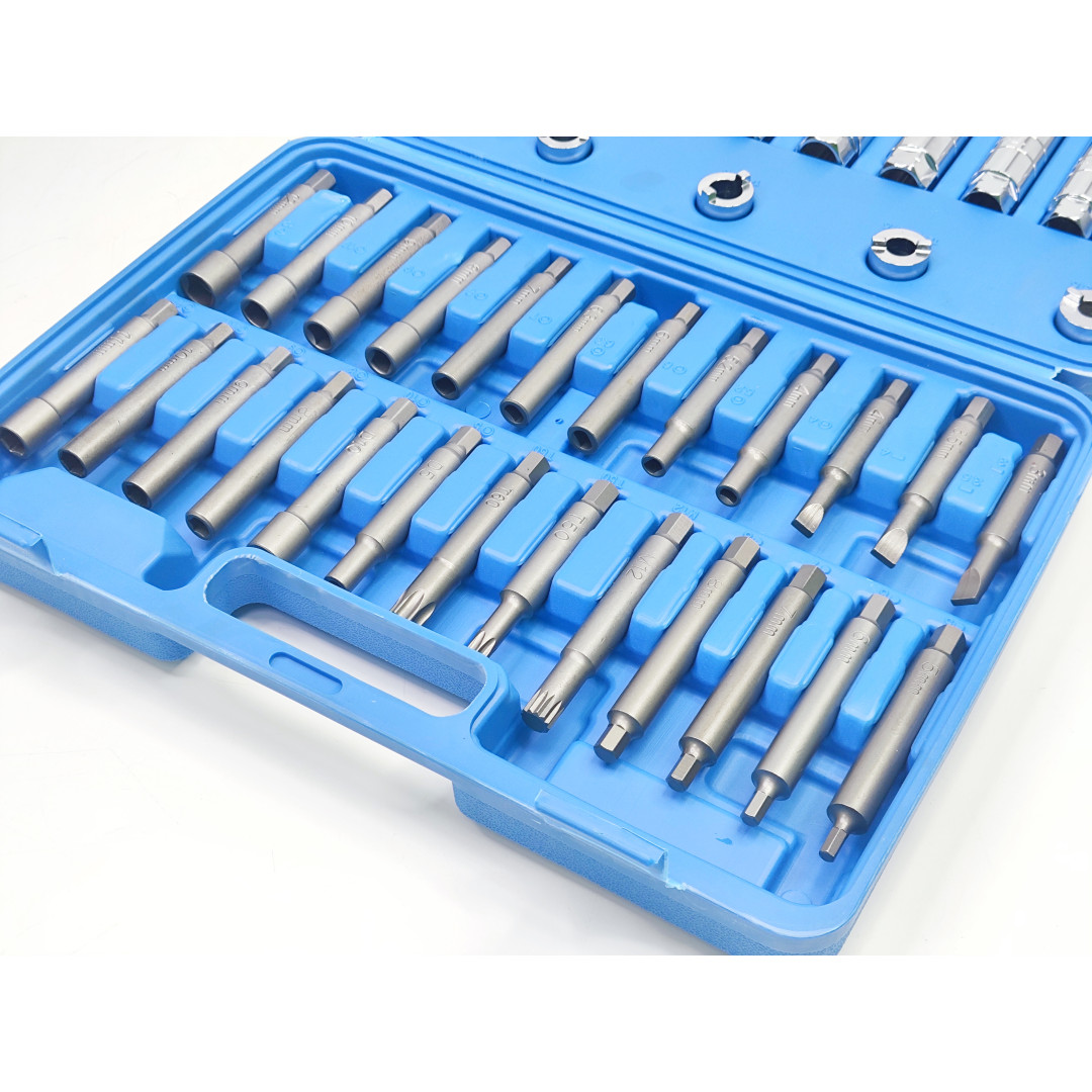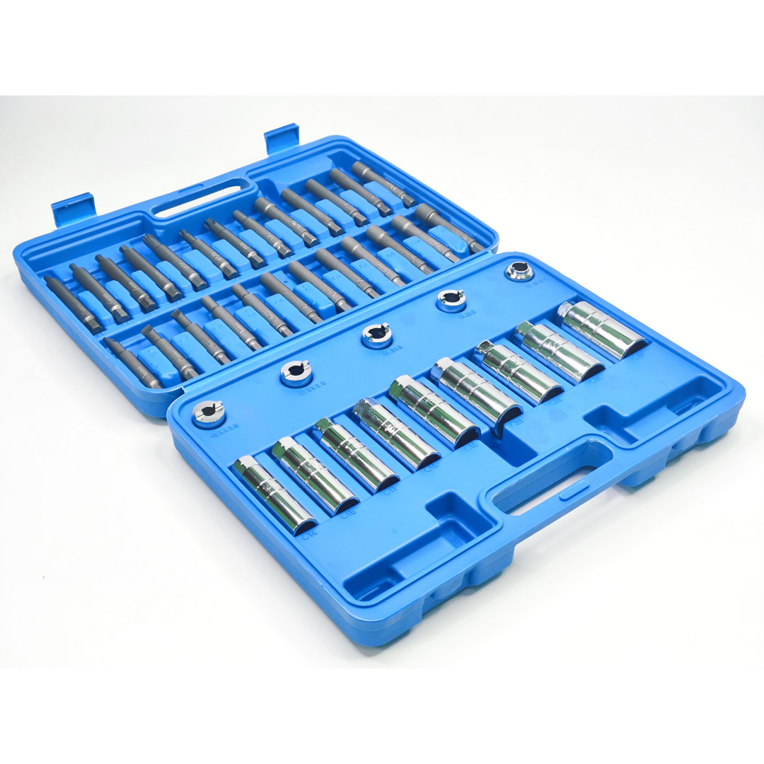 Этот набор ключей предназначен для обслуживания стоек амортизаторов на большинстве автомобилей. Он включает как специализированные ключи для различных моделей авто, так и универсальные головки и штифты для работы с разными типами креплений. Набор помогает эффективно заменять и обслуживать амортизаторы, обеспечивая надёжность и эффективность при работе.