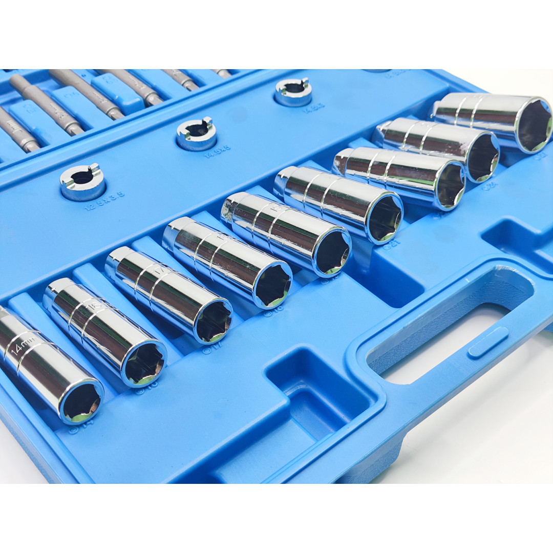 Этот набор идеально подходит для выполнения широкого спектра работ по замене и обслуживанию амортизаторов на различных автомобилях. Ключи и головки в комплекте позволяют эффективно работать с разными типами креплений и конструкциями, обеспечивая универсальность и удобство в использовании.