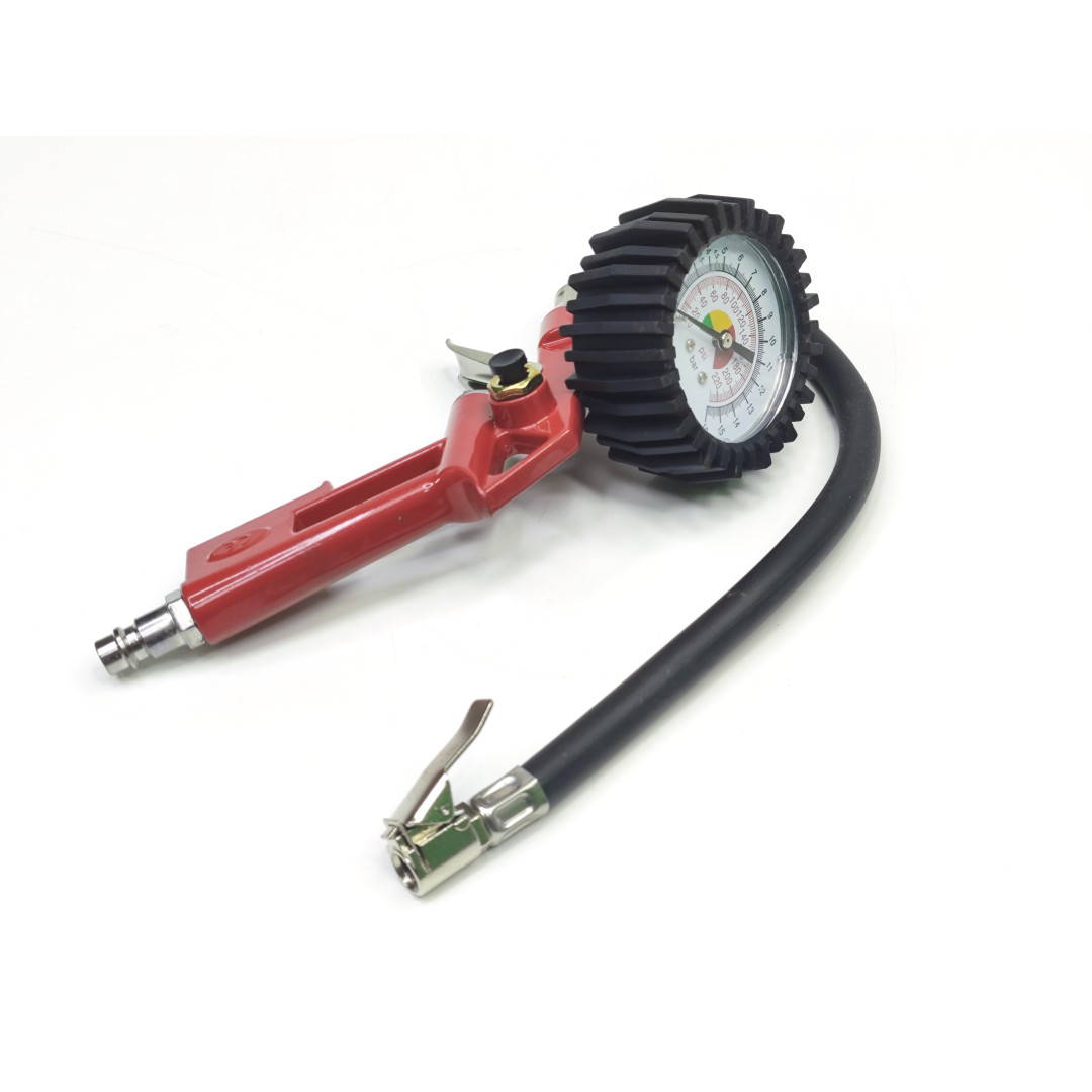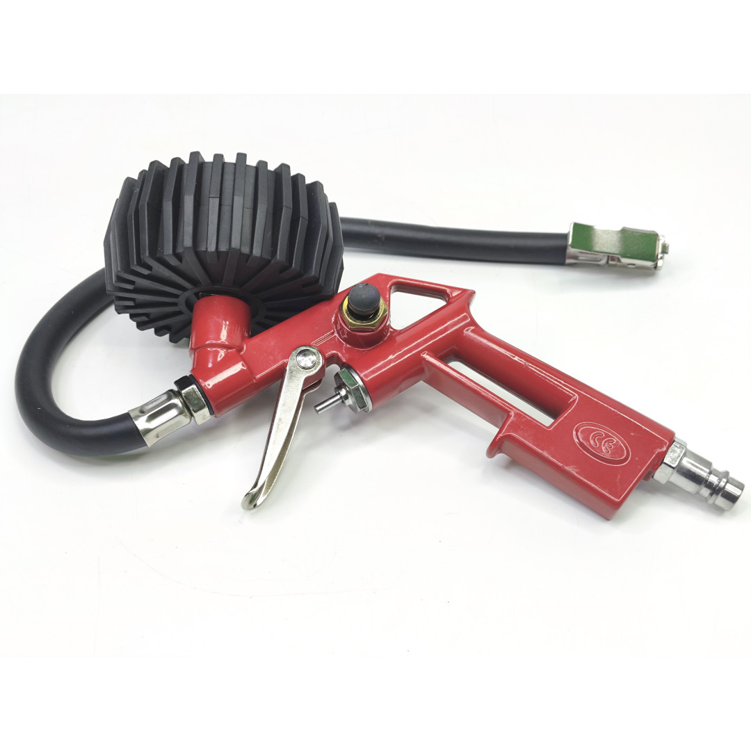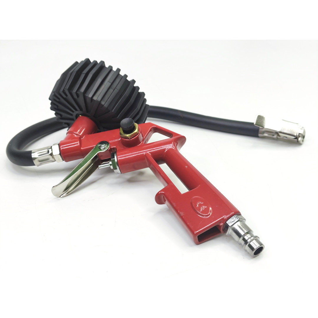 Пневмопистолеты для накачки шин используются в автомастерских, гаражах, на заправках. Они имеют манометр, позволяющий контролировать давление и шланг, предназначенный для соединения со штуцером. Контроль давления в шине имеет важное значение – если давление не соответствует установленному, возрастает расход топлива и ухудшается управление транспортным средством.