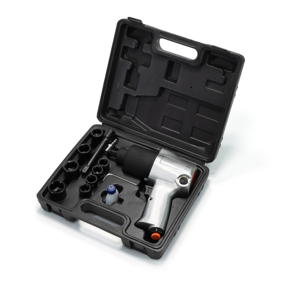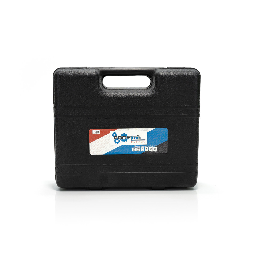Гайковерт Profline 72273 — пневматический инструмент профессионального типа, который широко используется в автомастерских, на производстве и при выполнении монтажных работ с применением крепежных элементов с различным профилем. Идеально подходит для шиномонтажа, а также ремонта грузовых автомобилей и техники. Данный гайковерт имеет ударный механизм и функцию реверса. Комплектуется набором головок размерами: 12, 13, 14, 15, 17, 19, 22, 24 мм. Также в комплект поставки входят шестигранный ключ, лубрикатор и удлинитель. Все это укомплектовано в удобный кейс. Скорость вращения составляет 7000 об/мин, а максимальное усилие — 610 Нм. Рабочее давление может достигать 6 атмосфер. Рукоятка прибора прорезинена, — с ним удобно и безопасно работать.