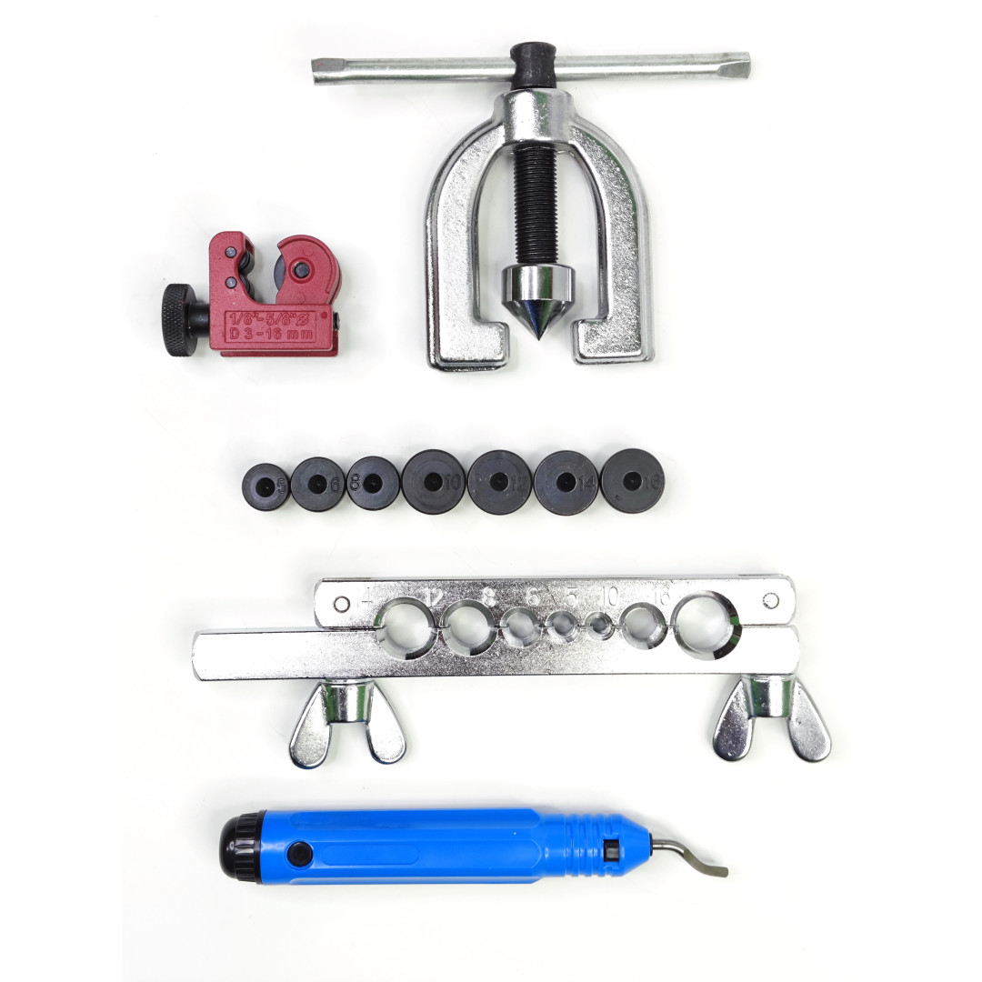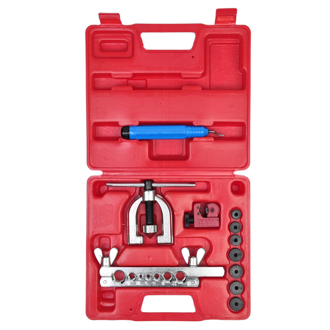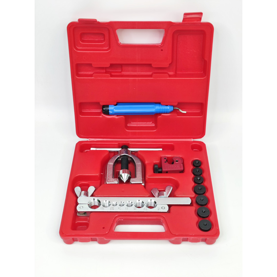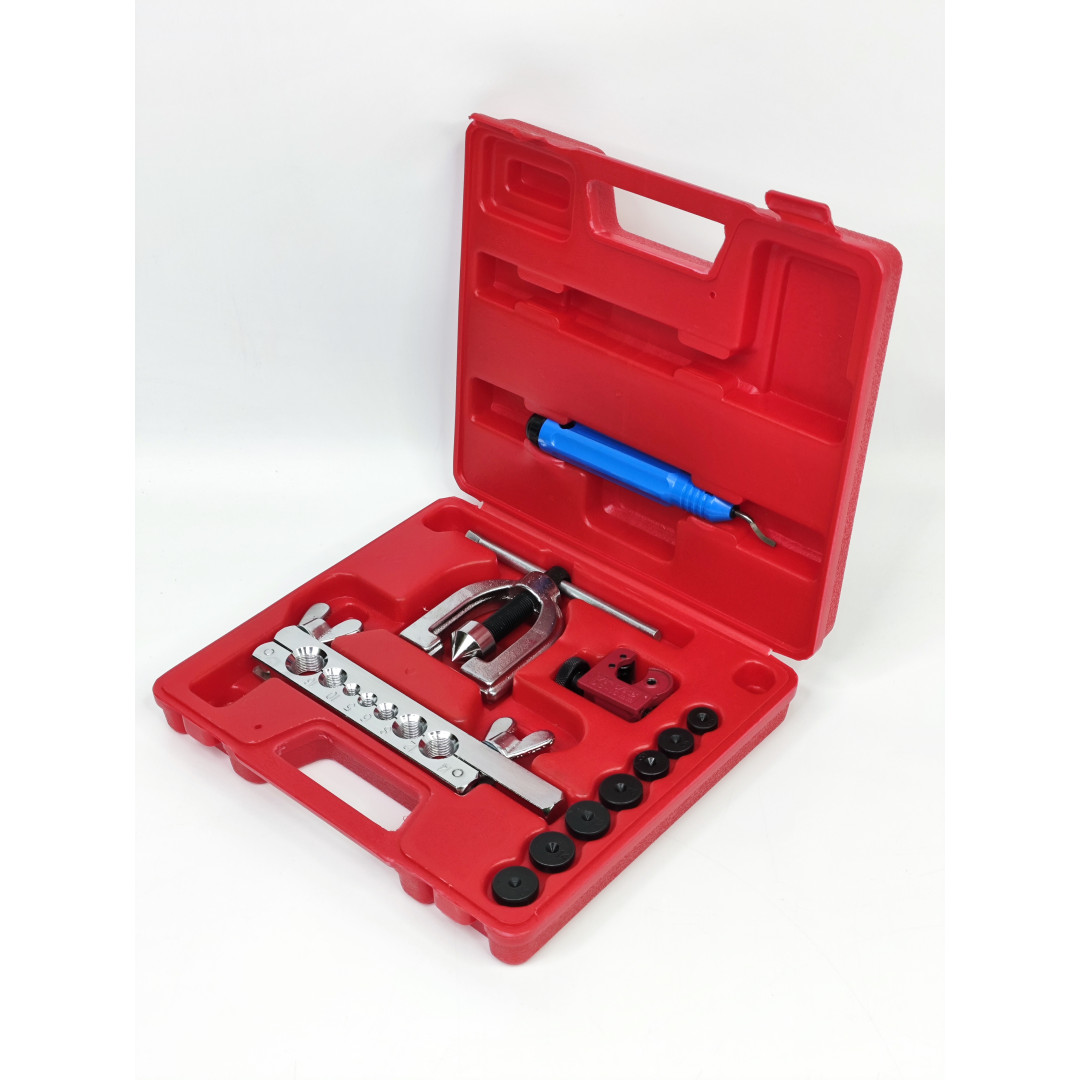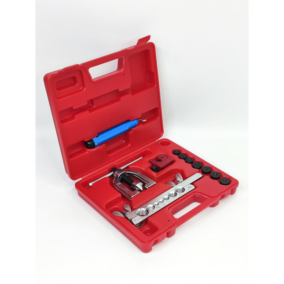 Профессиональный набор Profline 32180 для качественной развальцовки медных, алюминиевых и мягких стальных трубок тормозных, топливных, кондиционерных и гидравлических систем. Поддерживает два самых популярных стандарта — SAE (двойной 45°) и DIN (грибок). Компактный, удобный в работе даже одной рукой, идеален для автосервиса и монтажа кондиционеров.