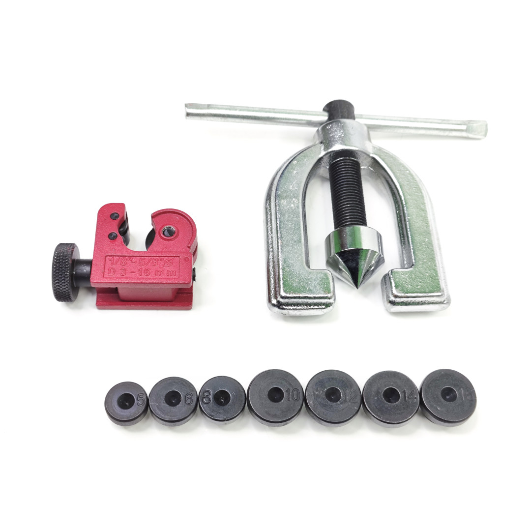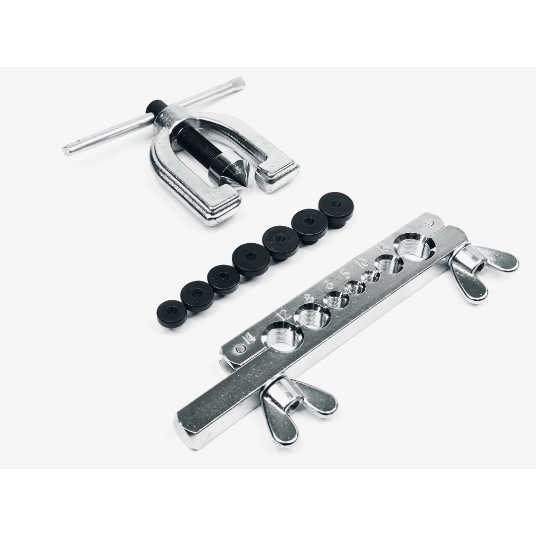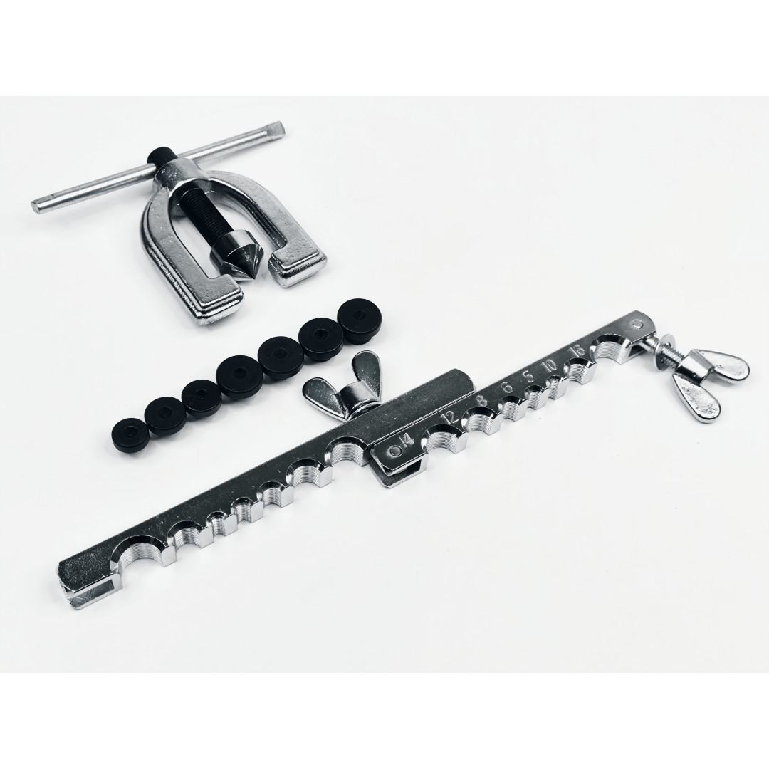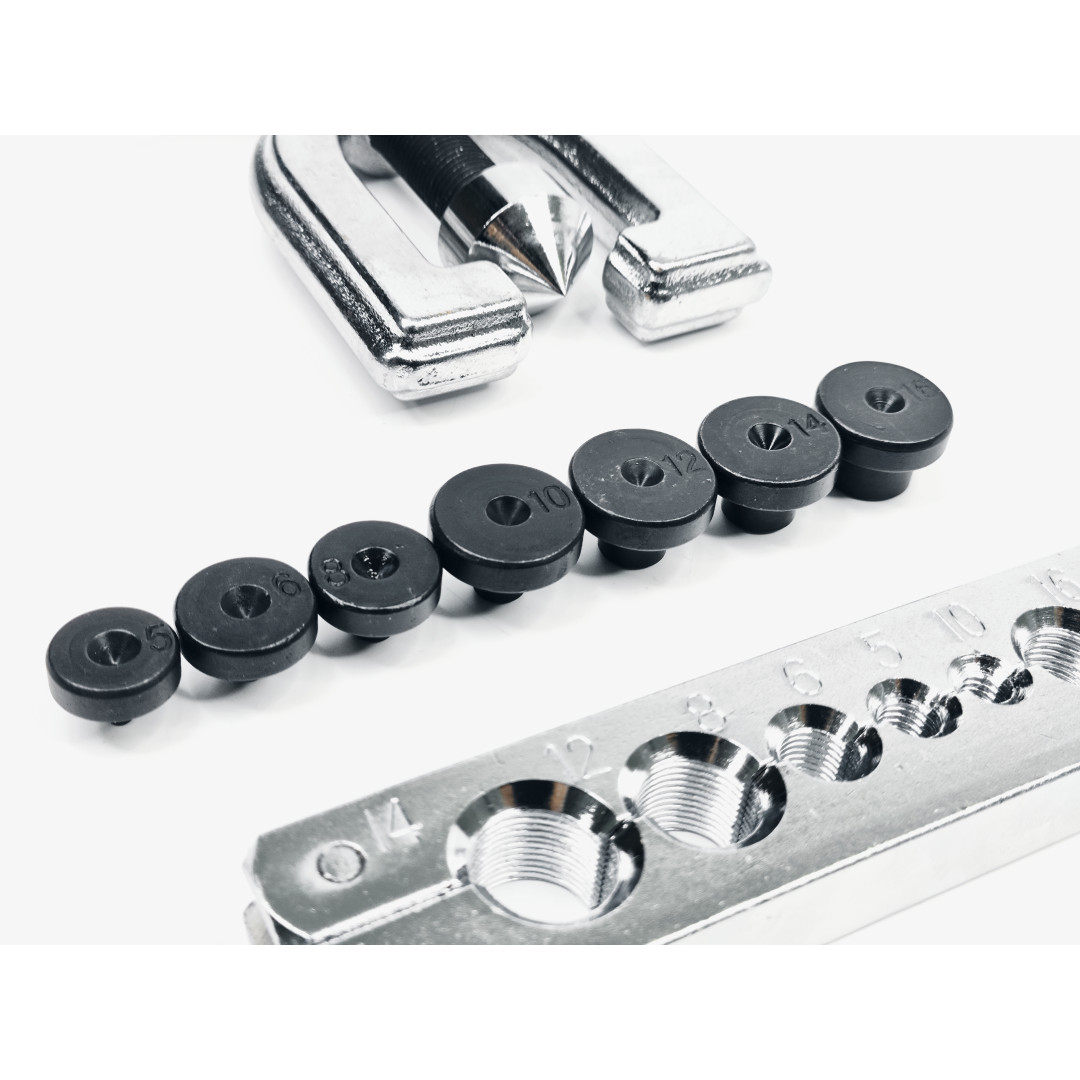 - Два типа развальцовки в одном наборе — SAE 45° + DIN грибок.