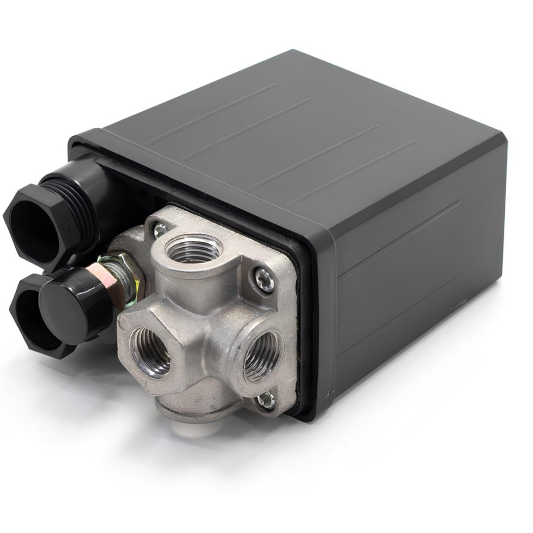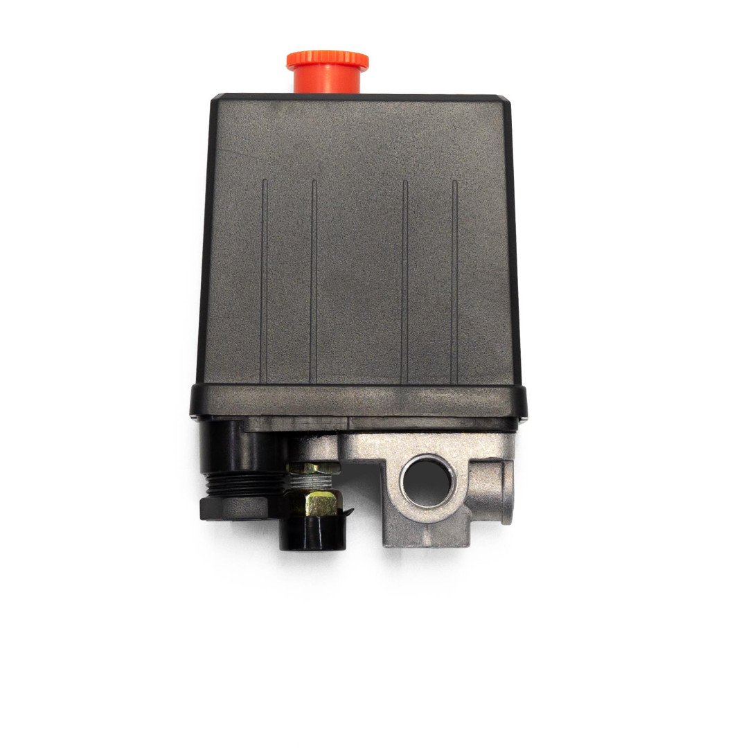 Прессостат Profline 7321C - устройство автоматического отключения электродвигателя компрессора при достижении максимально давления. Механизм отключения мембранно-пружинный. Рассчитан для электродвигателей 220В. Давление воздуха в системе давит на мембрану и при достижении максимального (установленного) давления пружинный механизм размыкает контакты питания электродвигателя.
