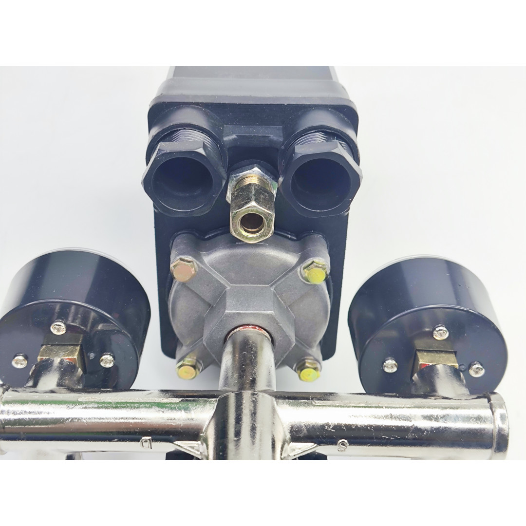 Система прессостата оснащена регулировочными винтами: давления включения и отключения (верхний/нижний предел), а также регулировки разницы (дельта) между этими пределами. Заводом-изготовителем установлено максимальное давление срабатывания — 8 Бар, давление включения — 6 Бар. Дельта — 2 ±10% Бар.