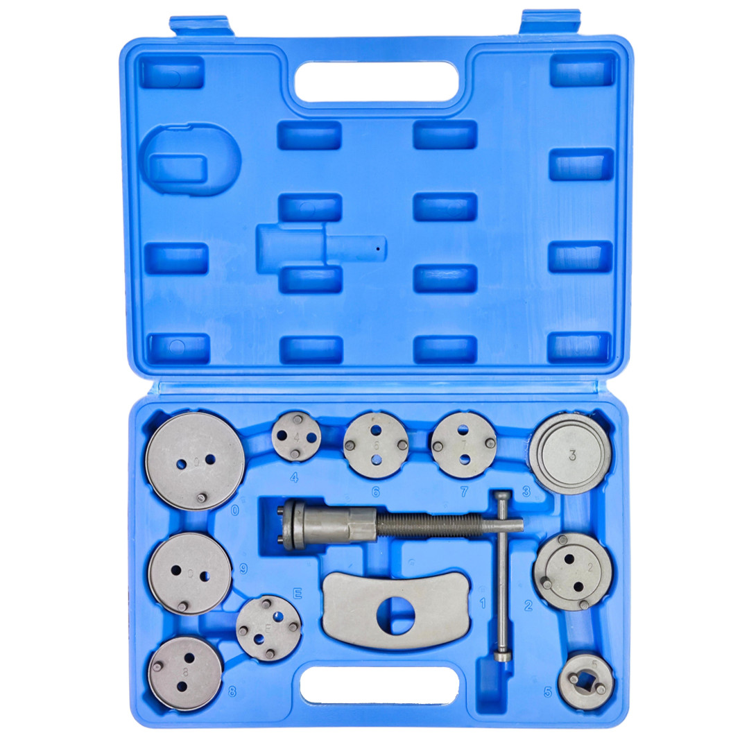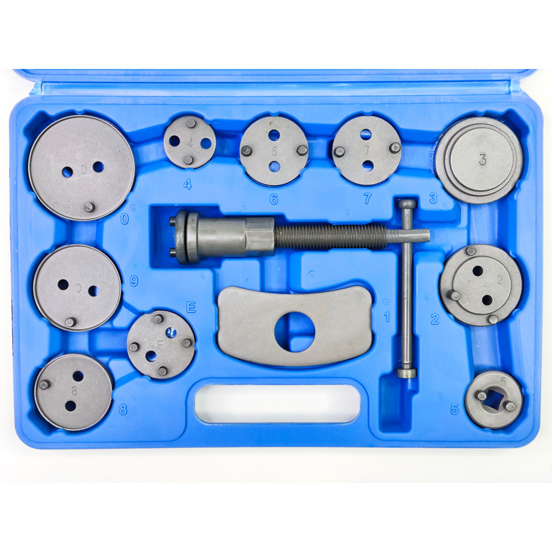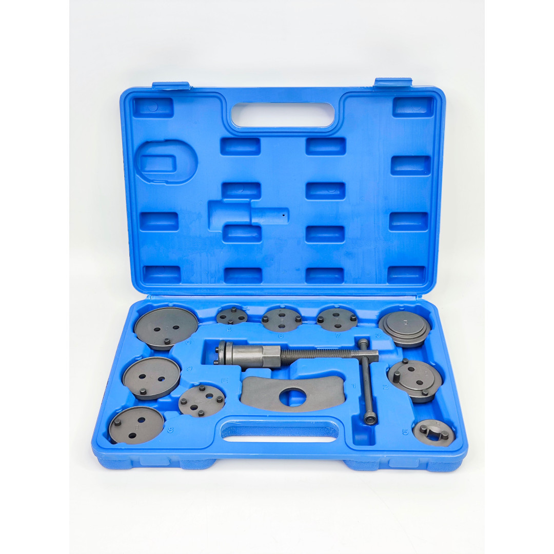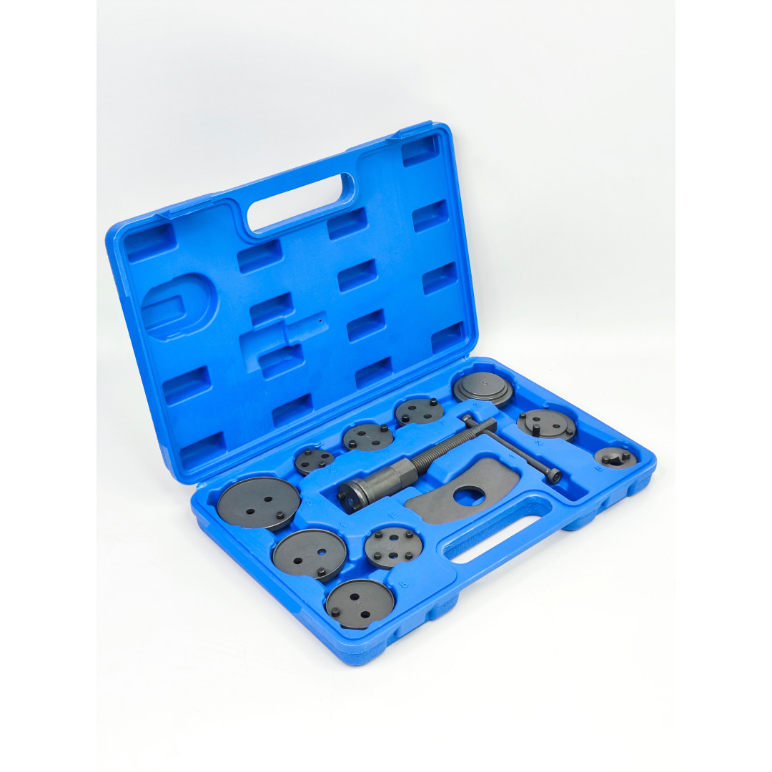 Этот прочный и простой в использовании пресс-комплект тормозного поршня совместим с большинством популярных марок автомобилей. Он будет незаменим, если вы захотите заменить тормозные колодки. Используя этот инструмент, вы не повредите прокладку. Этот комплект состоит из 1 правой ручки, 1 стопорной пластины, а также 11 адаптеров для различных тормозных систем. Кроме того, он поставляется в прочном профилированном ящике для удобства хранения и транспортировки.