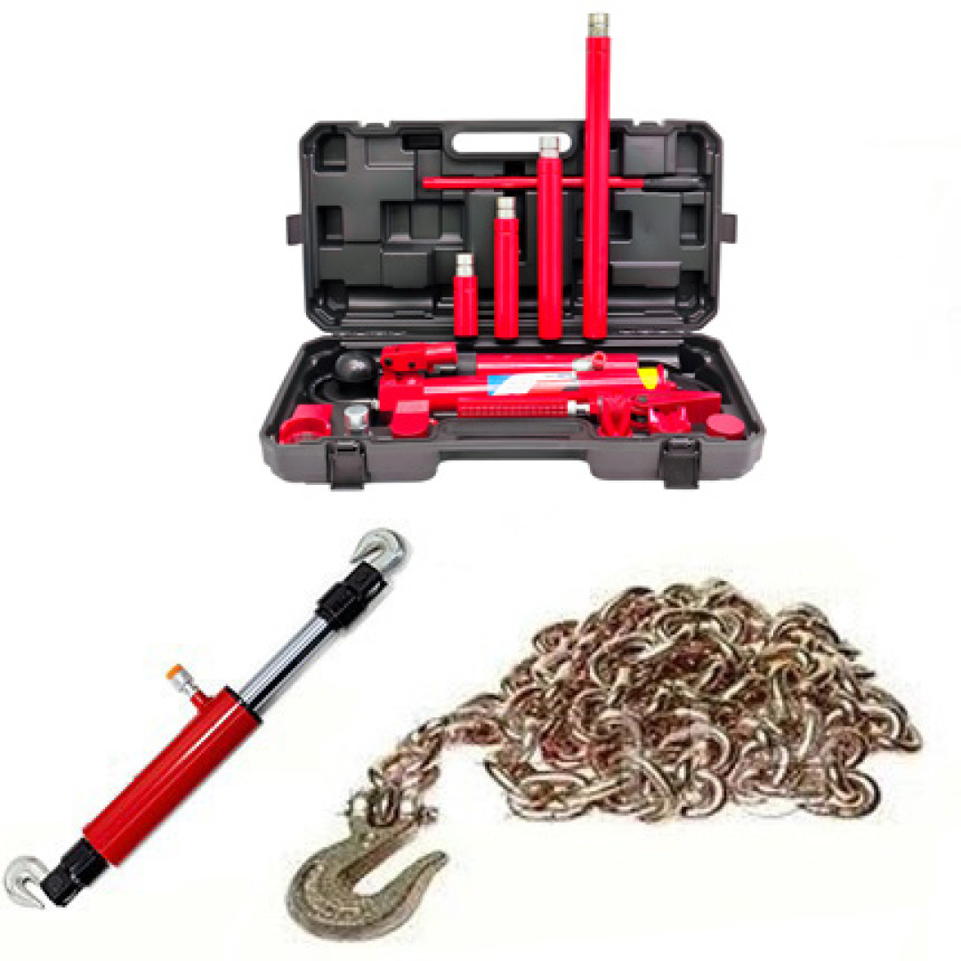 Комплект гидравлических распорок рассчитан на максимальную нагрузку в 10 тонны. В состав комплекта входит гидравлическая помпа (насос), с помощью которого выполняется растяжка и рихтовка конструкций из металла и кузовов автомобилей. Гидравлический клин с помощью которого обеспечивается поднятие тяжестей при минимальном зазоре и комплект насадок.