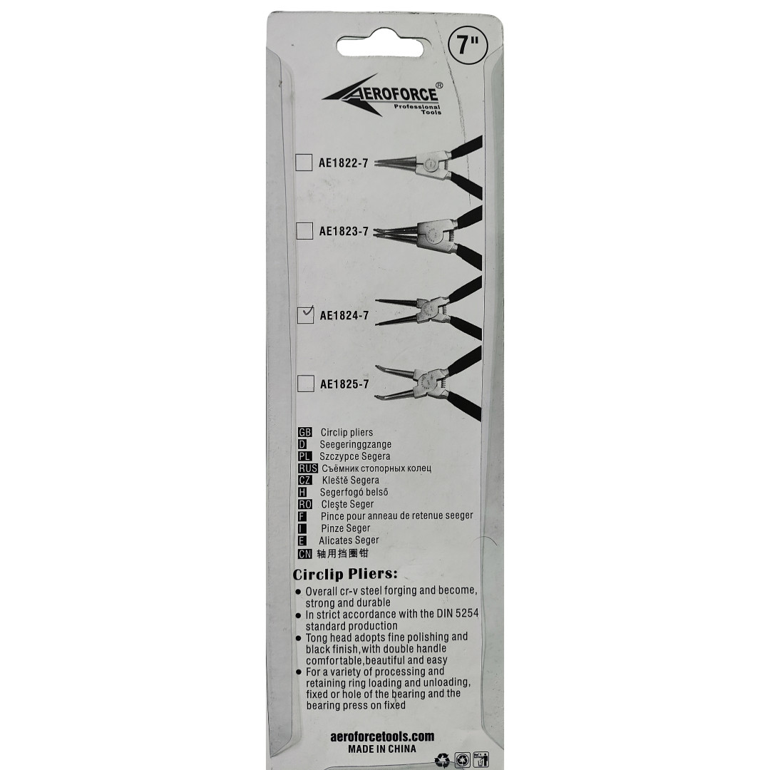 Щипцы для снятия стопорных колец прямі прямые на сжатие 180 мм Aeroforce AE-1824-7