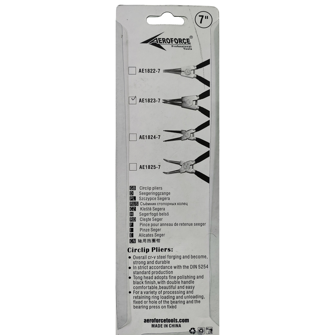 Щипцы для снятия стопорных колец прямые на разжим 180 мм Aeroforce AE-1823-7