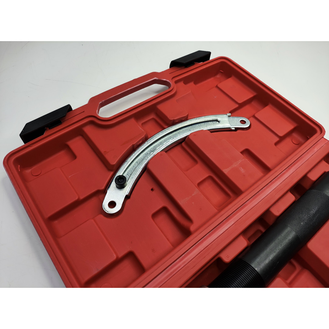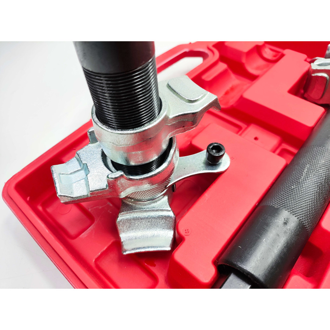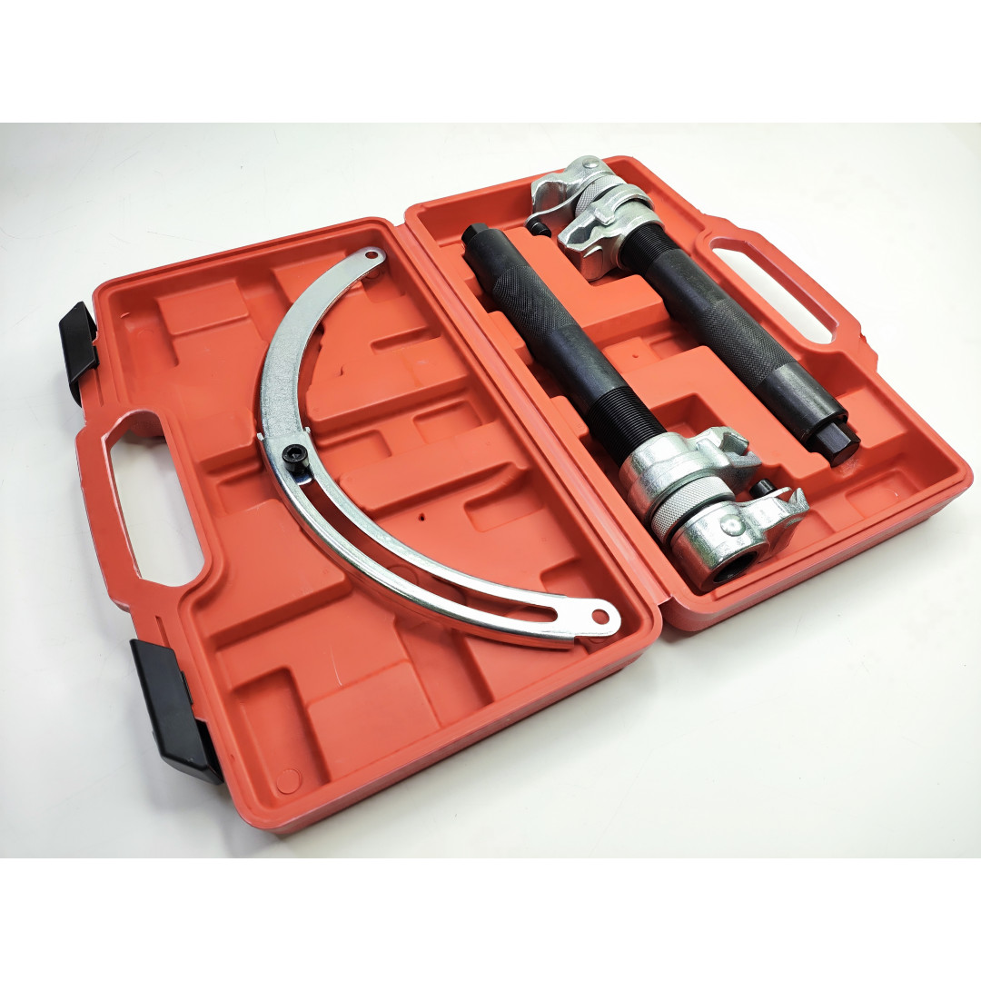 Максимальное тяговое усилие съемника составляет 1500 кг. Съемник пружин подходит для применения не только в гараже, но и для профессионального использования в машиностроении, автомастерских, СТО и подходит для автомобилей таких марок BMW, Opel, Volkswagen, Audi, Porsche, Saab, Toyota, Mitsubishi, Honda, Ford, Subaru, Nissan или Volvo. В комплекте идет пластиковый кейс для удобного хранения и транспортировки.