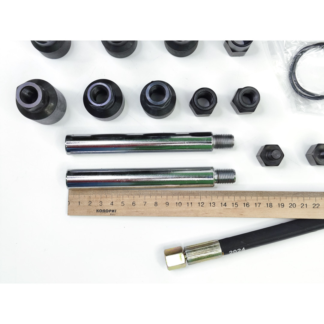 - Универсальный комплект адаптеров — подходит для форсунок Bosch, Denso, Delphi, Siemens CR и других популярных типов.