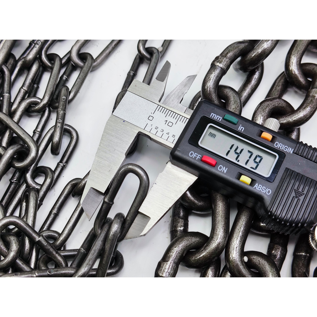 - Грузовая цепь G80 Ø8 мм — не рвётся и не вытягивается.