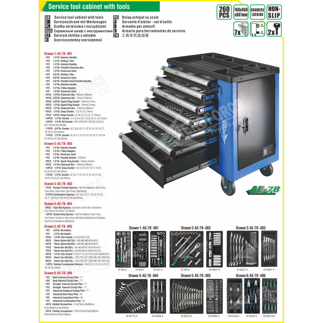 Тележка на колесах с инструментами 7 секций 272 ед. Aeroforce AE-7B