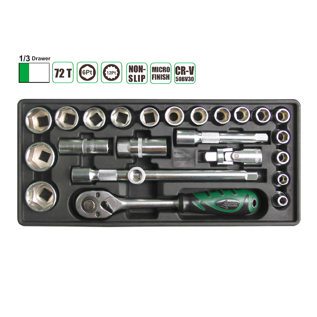 17 шт.: 3/8" Головки (6–24 мм: 6, 7, 8, 9, 10, 11, 12, 13, 14, 15, 16, 17, 18, 19, 21, 22, 24 мм);