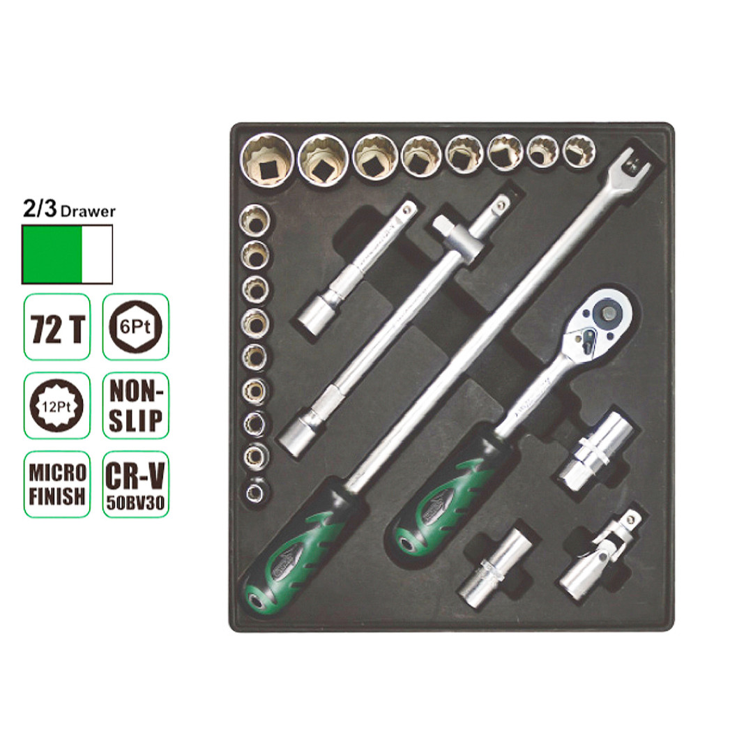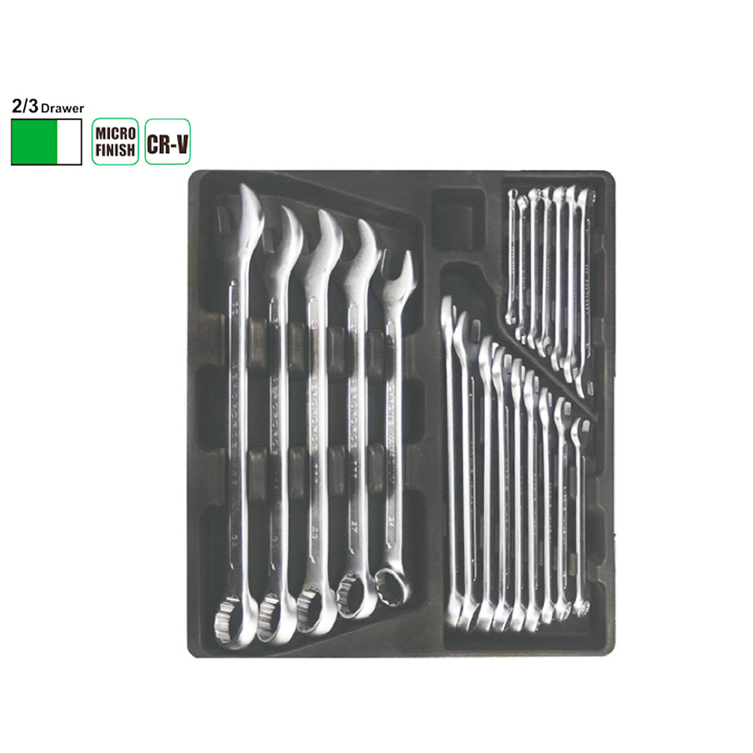 21 шт.: Комбинированный ключ: 6, 7, 8, 9, 10, 11, 12, 13, 14, 15, 16, 17, 18, 19, 21, 22, 24, 27, 29, 30, 32 мм.