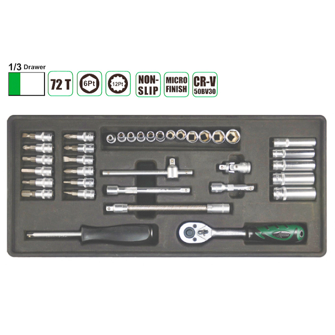 1 шт.: 3/8" Трещоточная рукоятка с гибкой головкой;