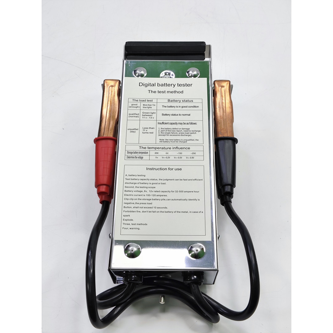 Подходит для проверки работоспособности свинцово-кислотных аккумуляторных батарей с внутренними соединениями и номинальным напряжением 6, 12 В и ёмкостью до 1000А/ч.