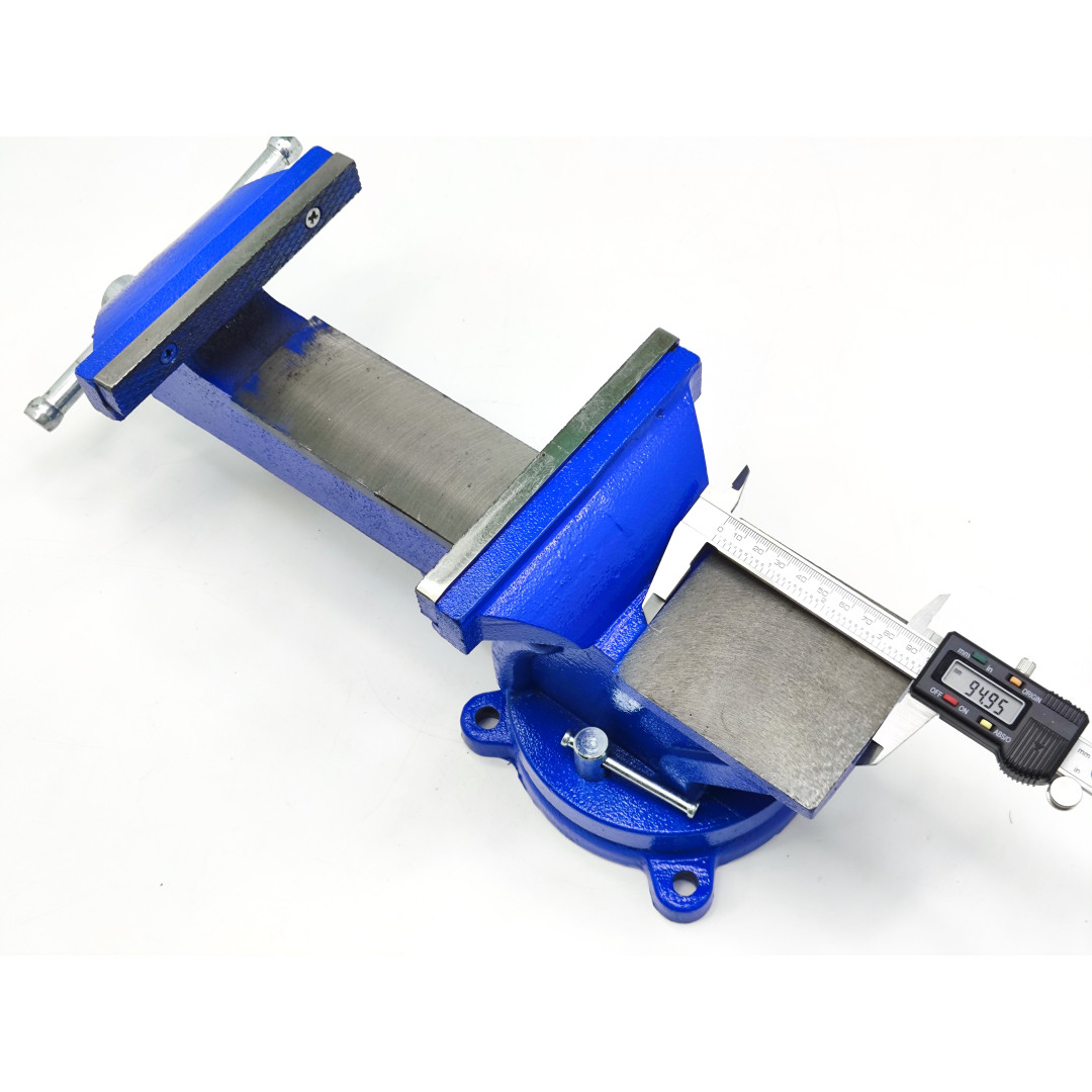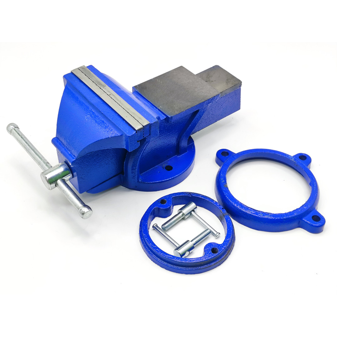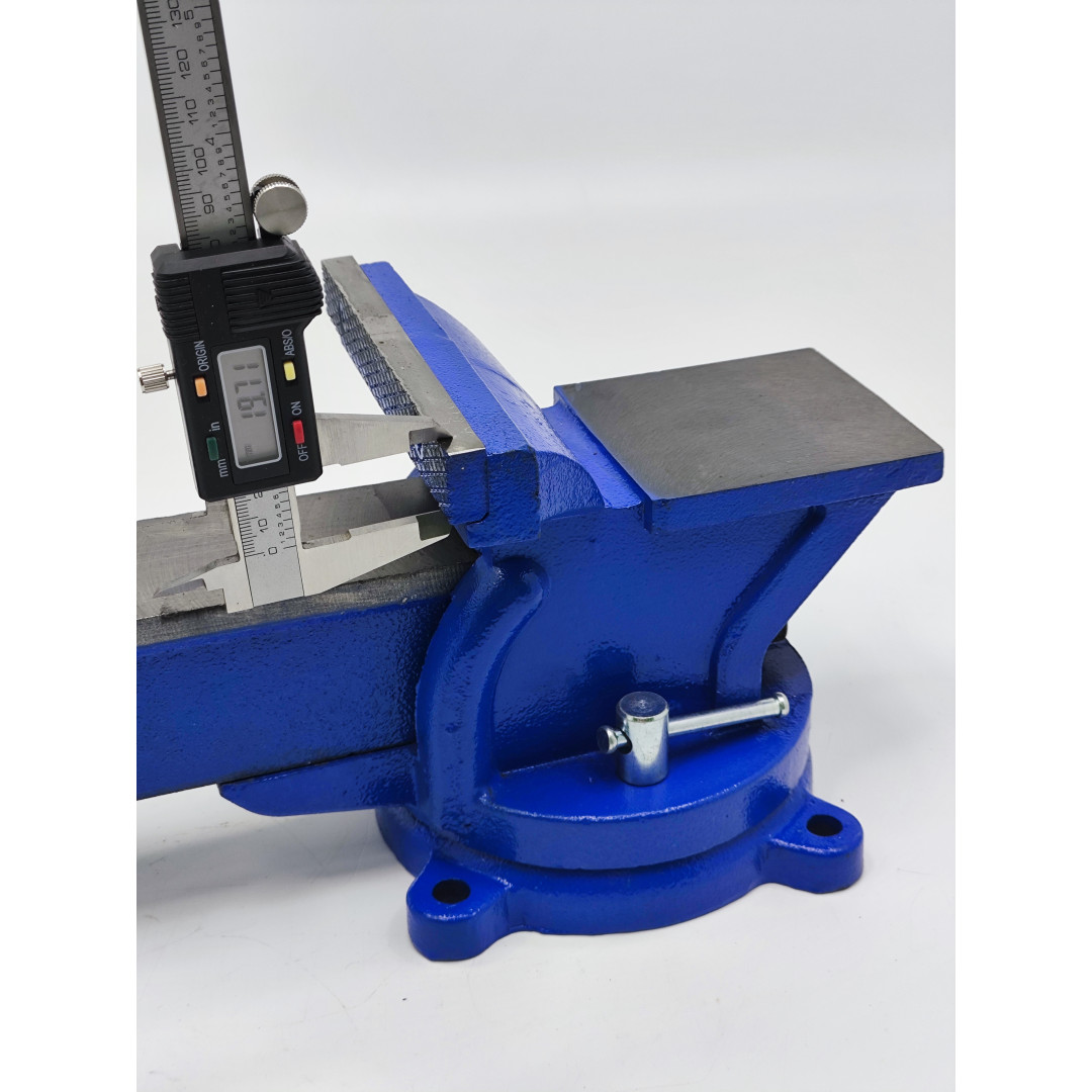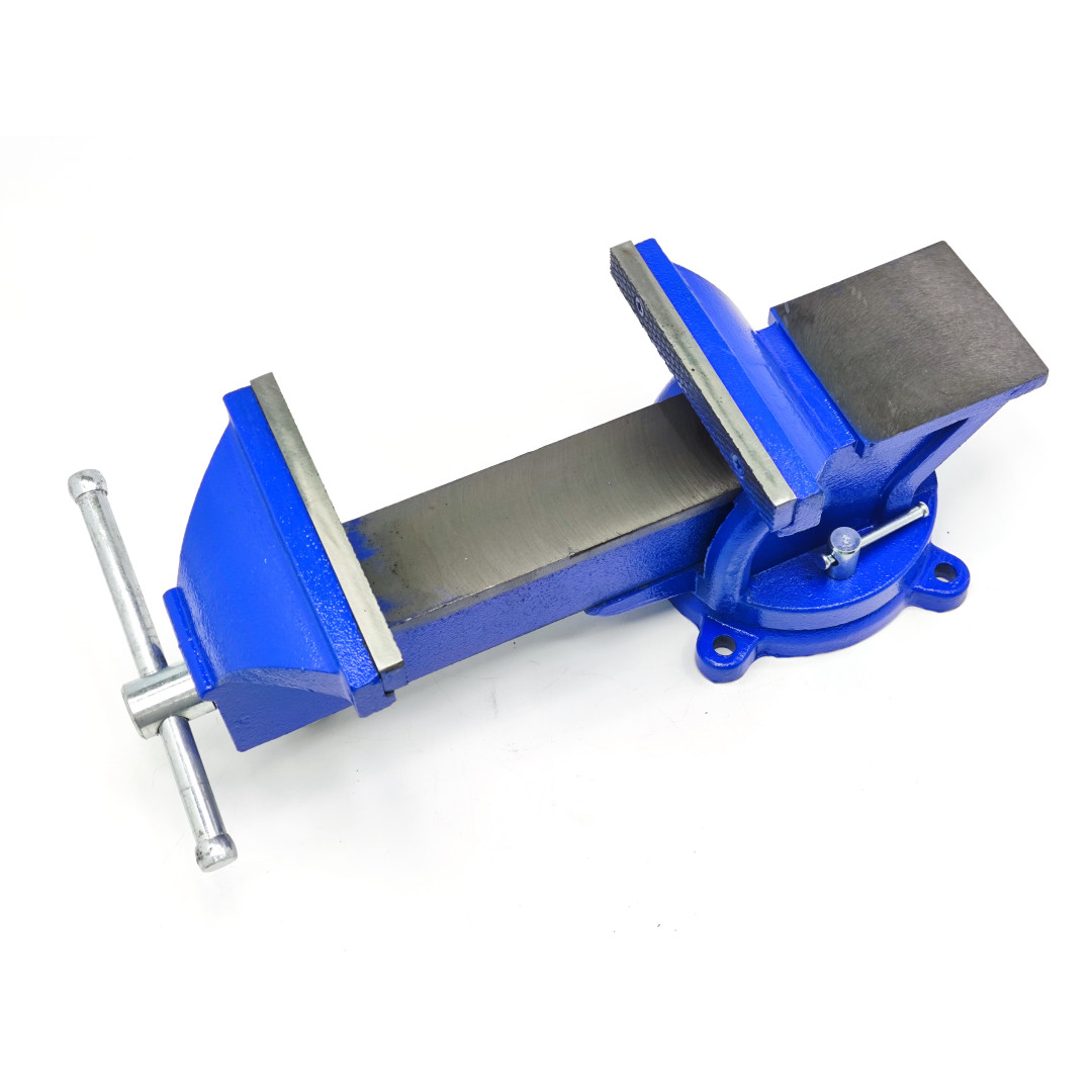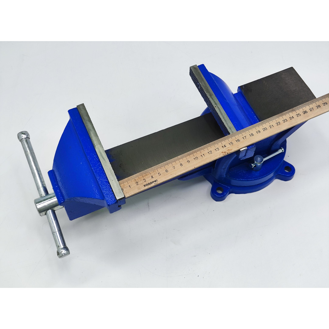 Классические поворотные слесарные тиски из высококачественного серого чугуна. Ширина губок 150 мм, поворотная база на 360°, наковальня на задней части, хромированная ходовая гайка и трапецеидальный винт. Идеальны для гаража, СТО, мастерской и домашнего использования.